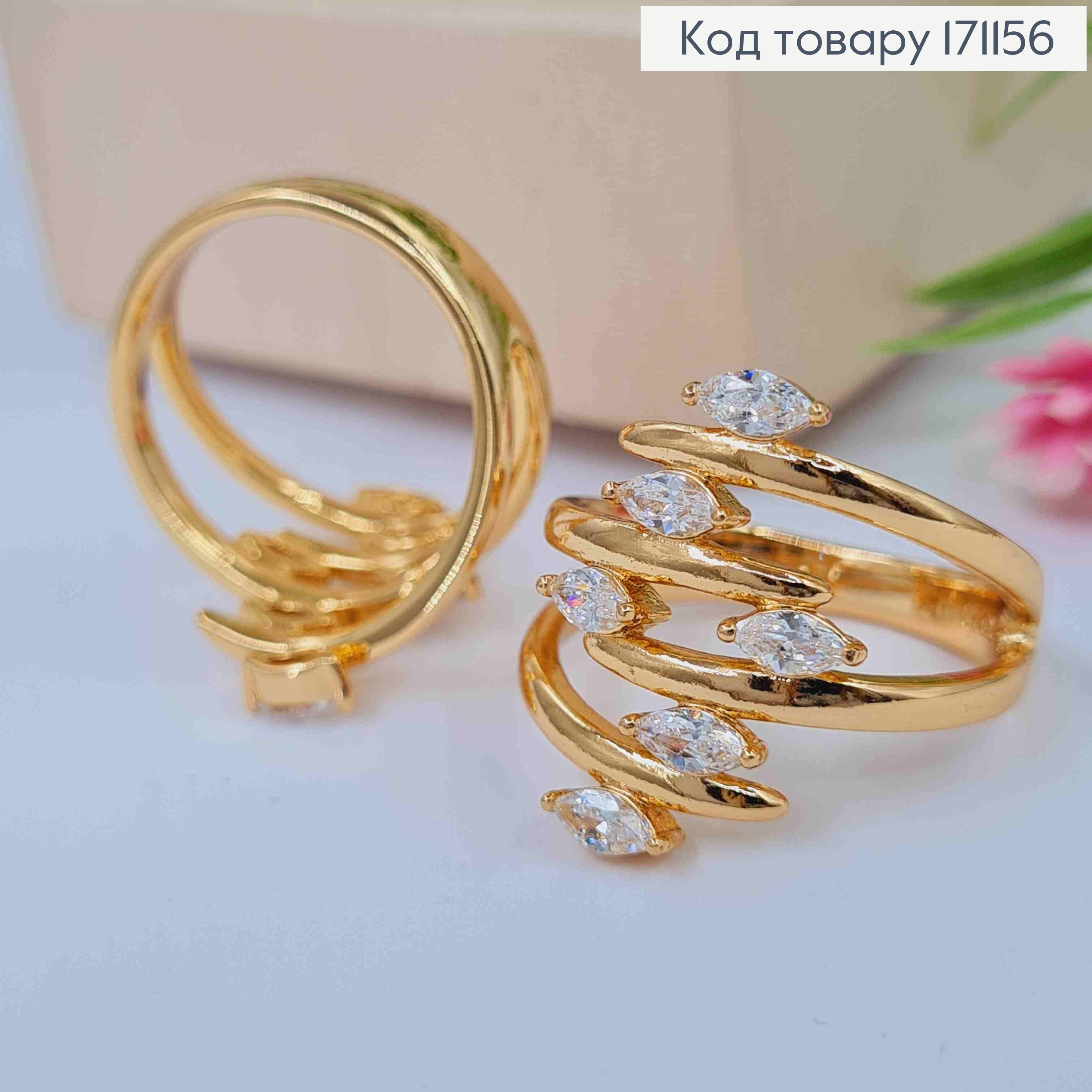 Перстень "Блискавка" з Блискучими камінцями, Xuping 18К 171259 фото