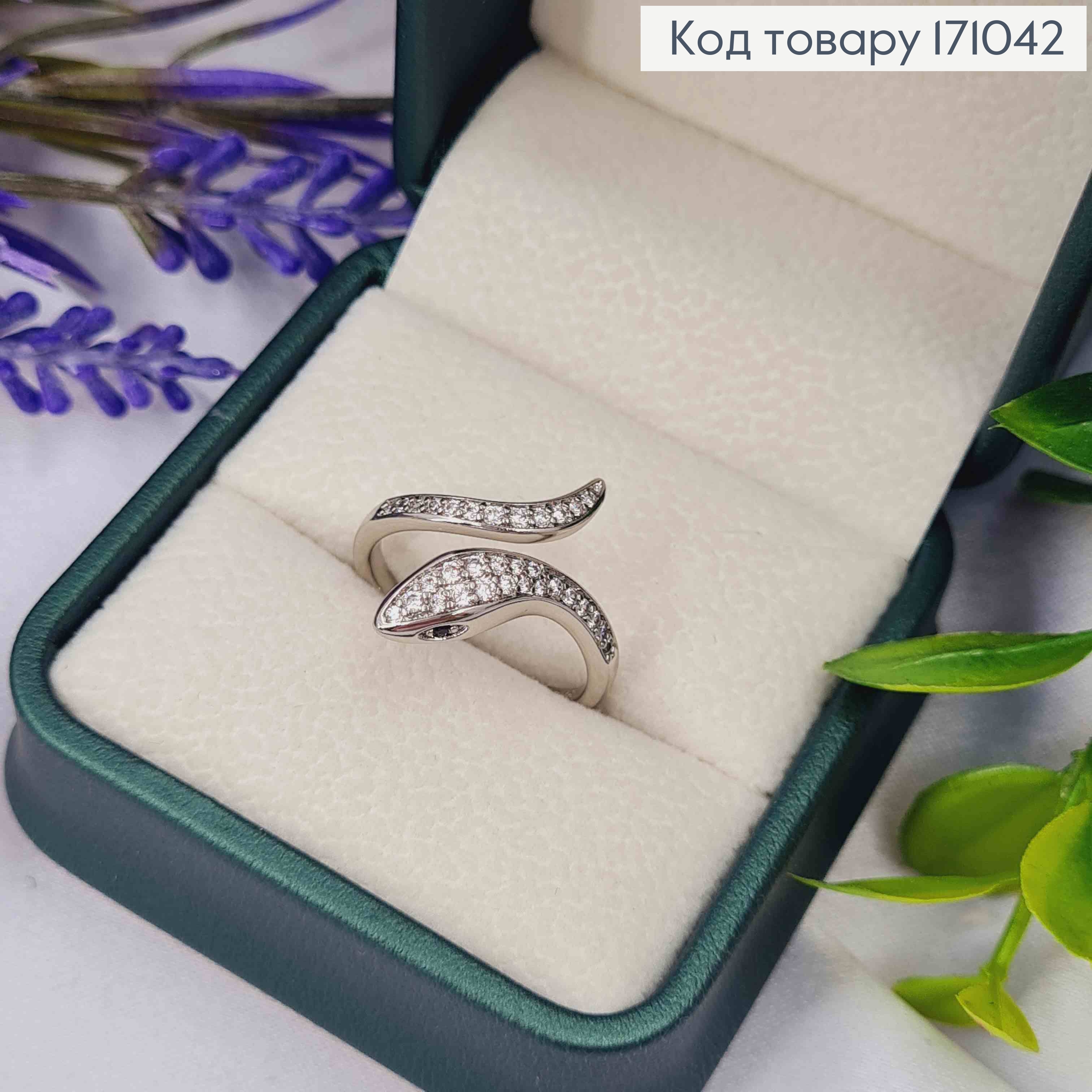 Перстень родований "Змійка" прикрашений Блискучими камінцями, Xuping