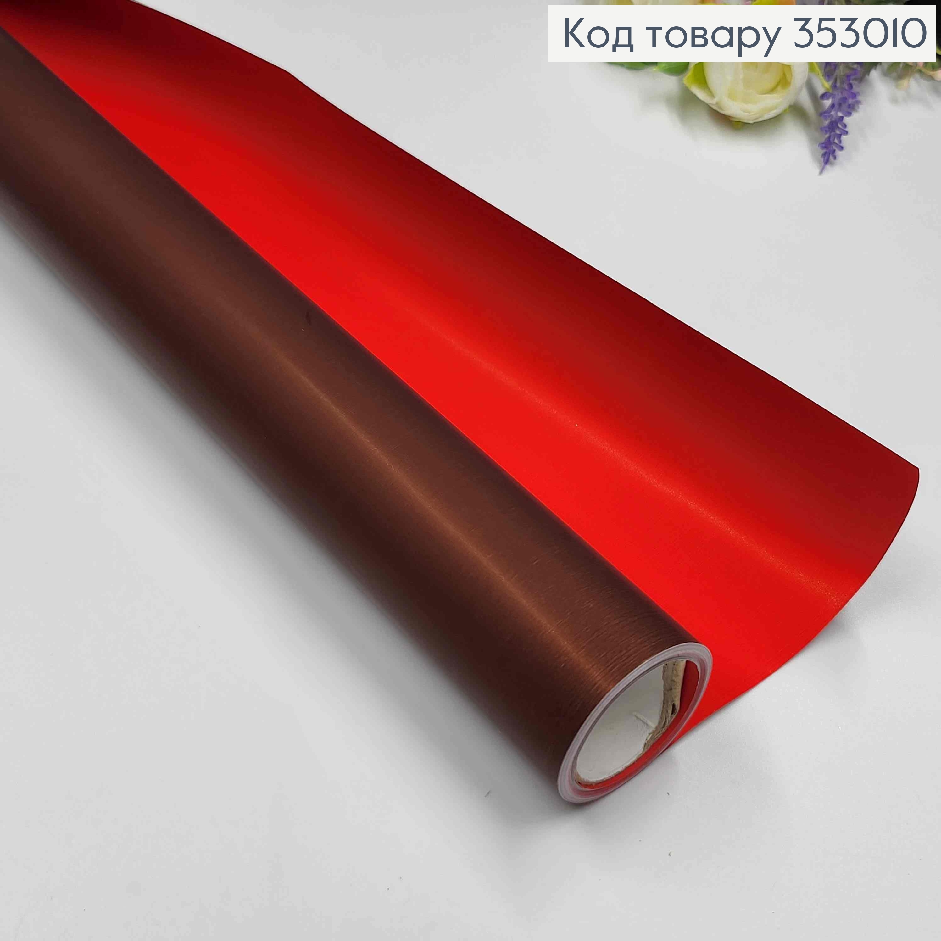 Плівка двостороння "Бархат перламутр" глянцева, колір ШОКОЛАД+ЧЕРВОНИЙ, рулон 68см*8м,щільна 70мкр