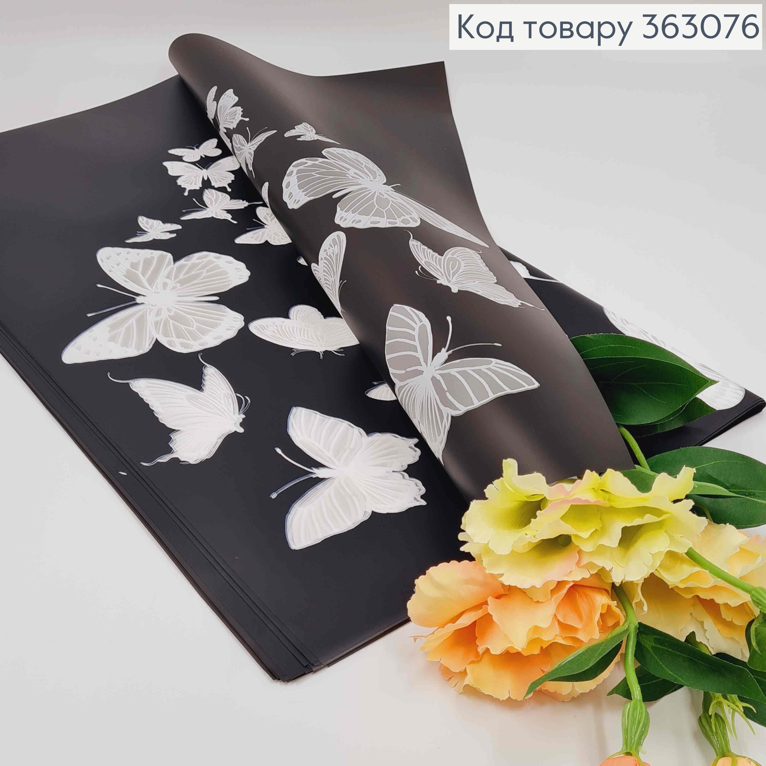 Плівка калька, матова ЧОРНА З НАПІВПРОЗОРИМ МЕТЕЛИКОМ, в листах 58*58см, 60мкр