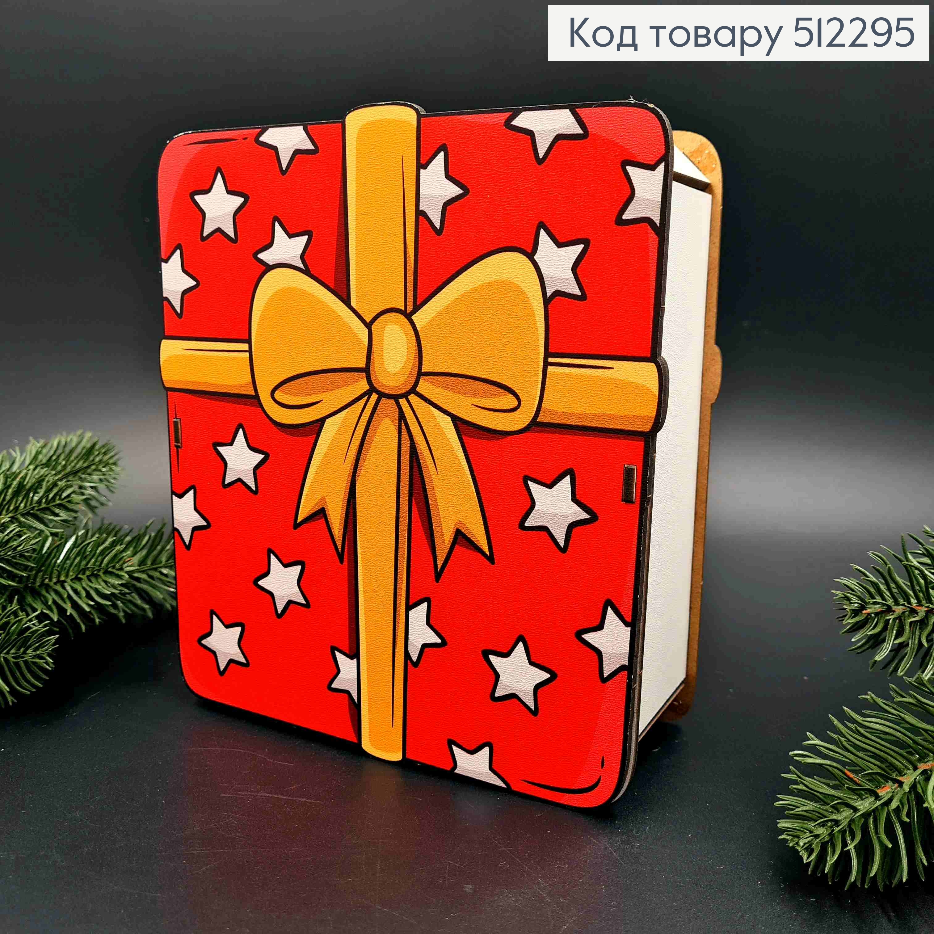 Подарункова дерев'яна коробка з принтом "Червоний Бант", Квадратна 20*20см, висота 6см 512301 фото