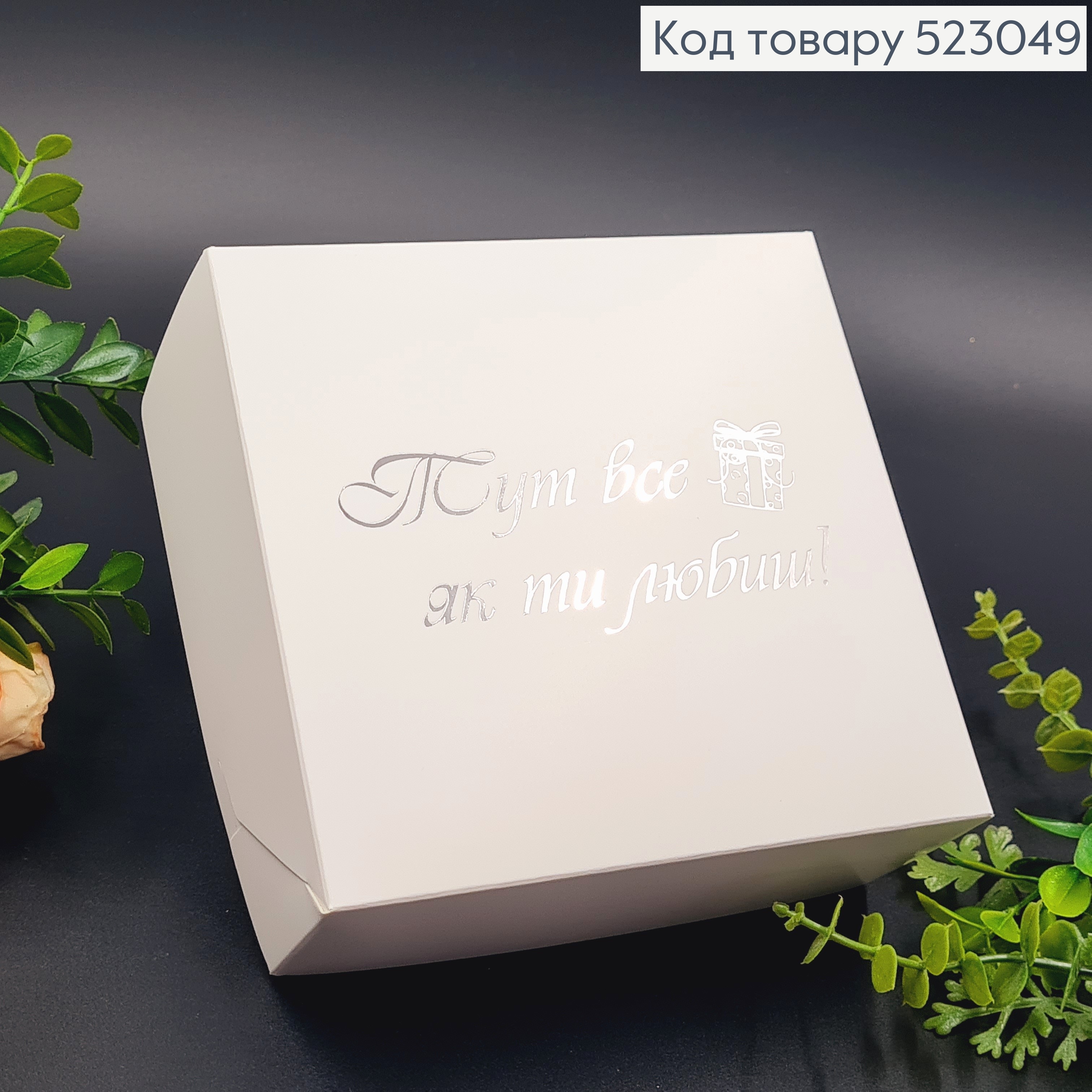 Подарункова складна коробка, Білого кольору з Срібним тисненням "Тут все як ти любиш", 15*15*6см