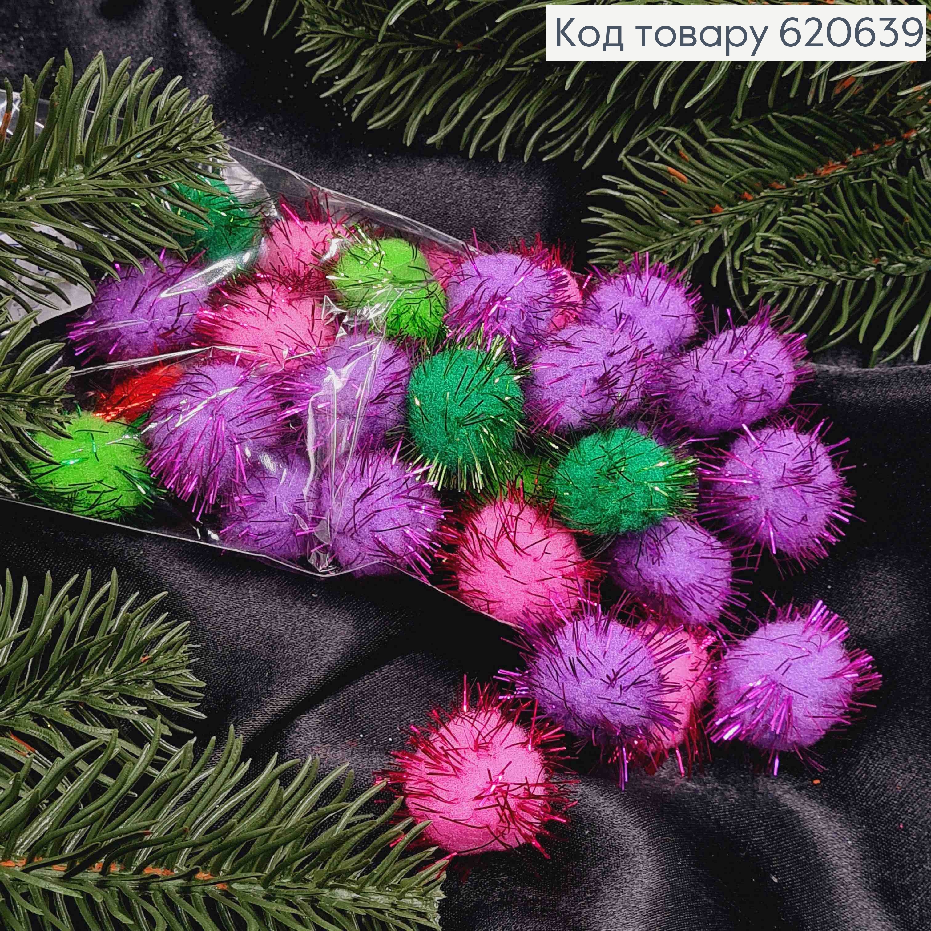 Помпони з люрексом, 30шт/уп, ЯСКРАВИХ кольорів, 3,2см