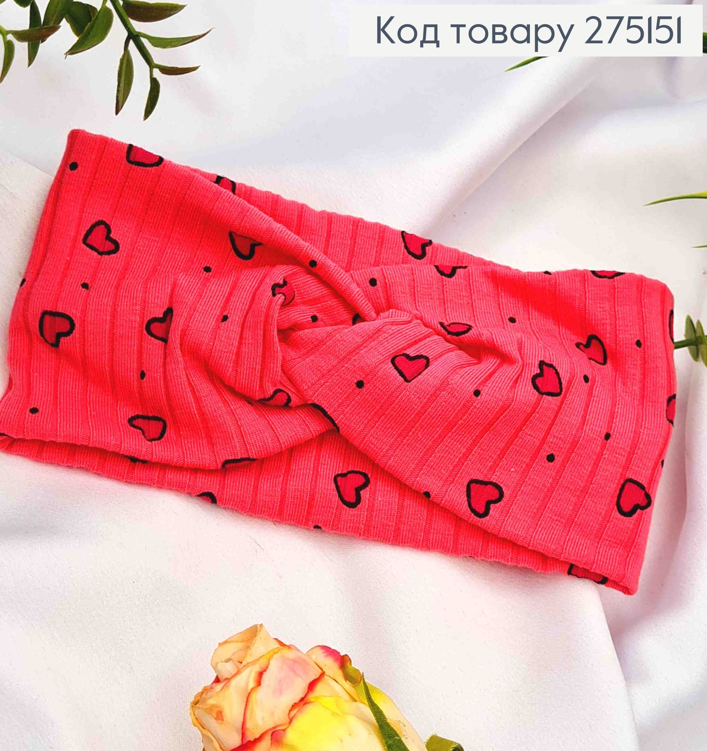 Пов'язка чалма малютка, МАЛИНОВОГО кольору з принтом "Серце", діаметр 32*8см, ручна робота, Україна
