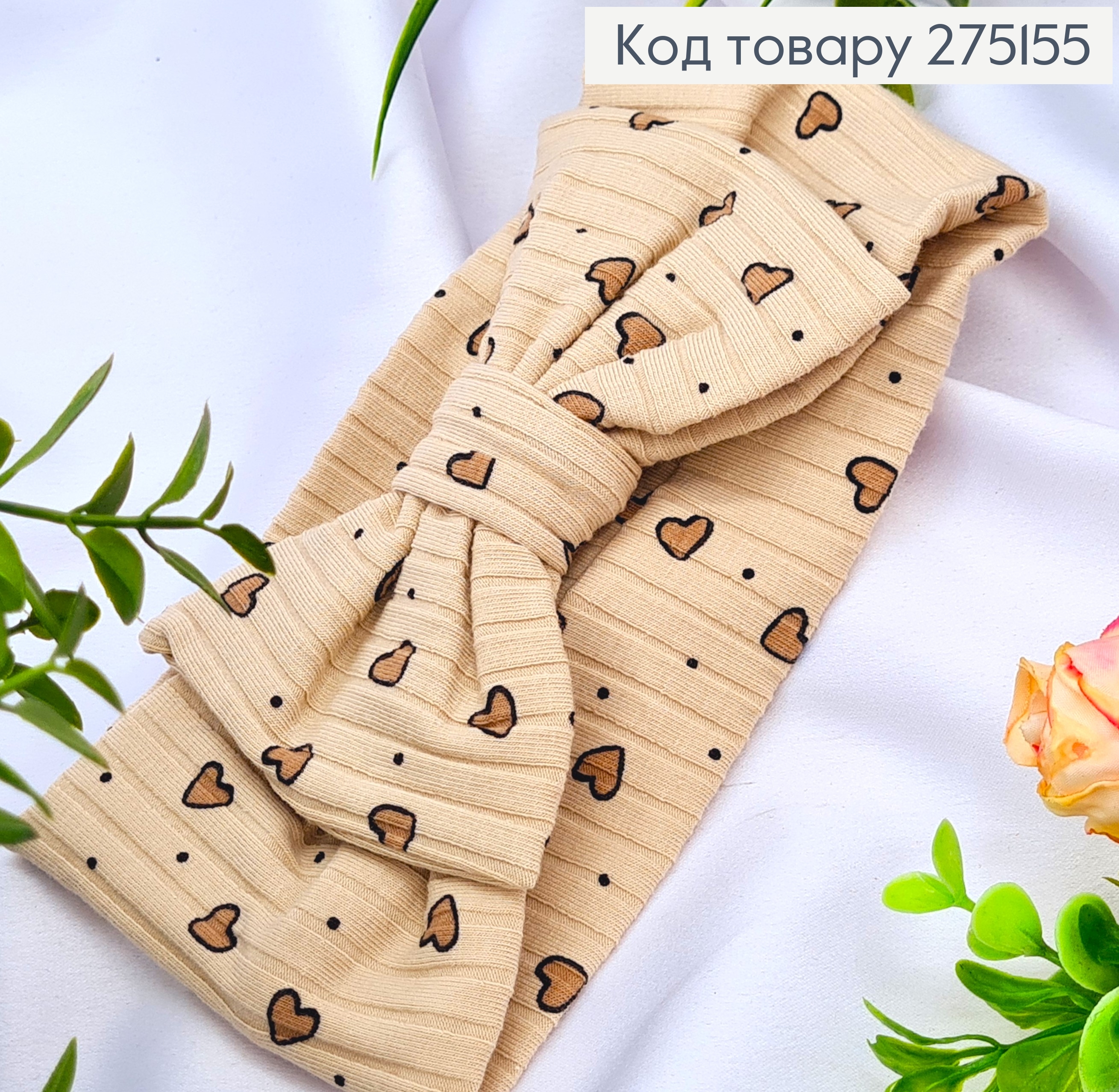 Пов'язка солоха, БЕЖЕВОГО кольору з принтом "Серце", діаметр 36*9см, ручна робота, Україна