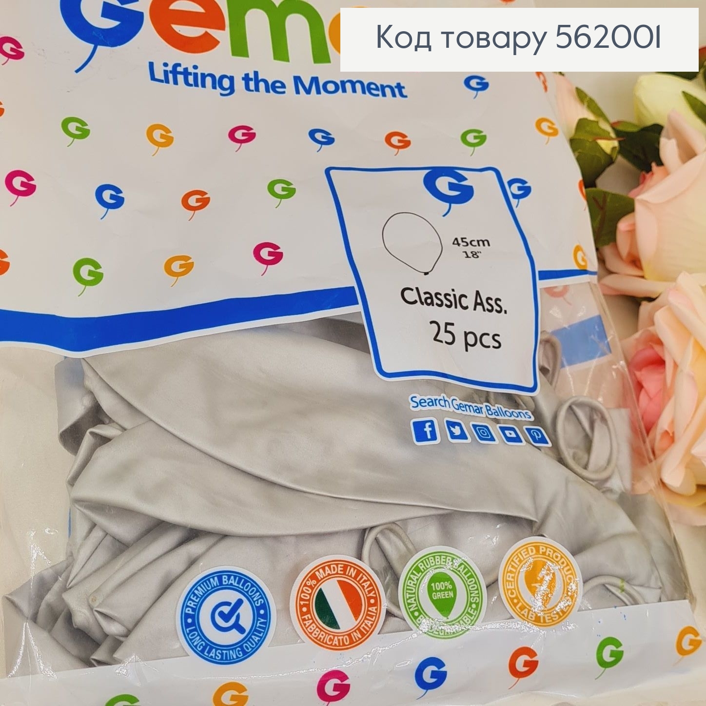 Повітряні кулі латексні 18'' Gemar Срібні (45см), 25шт/уп 575204 фото