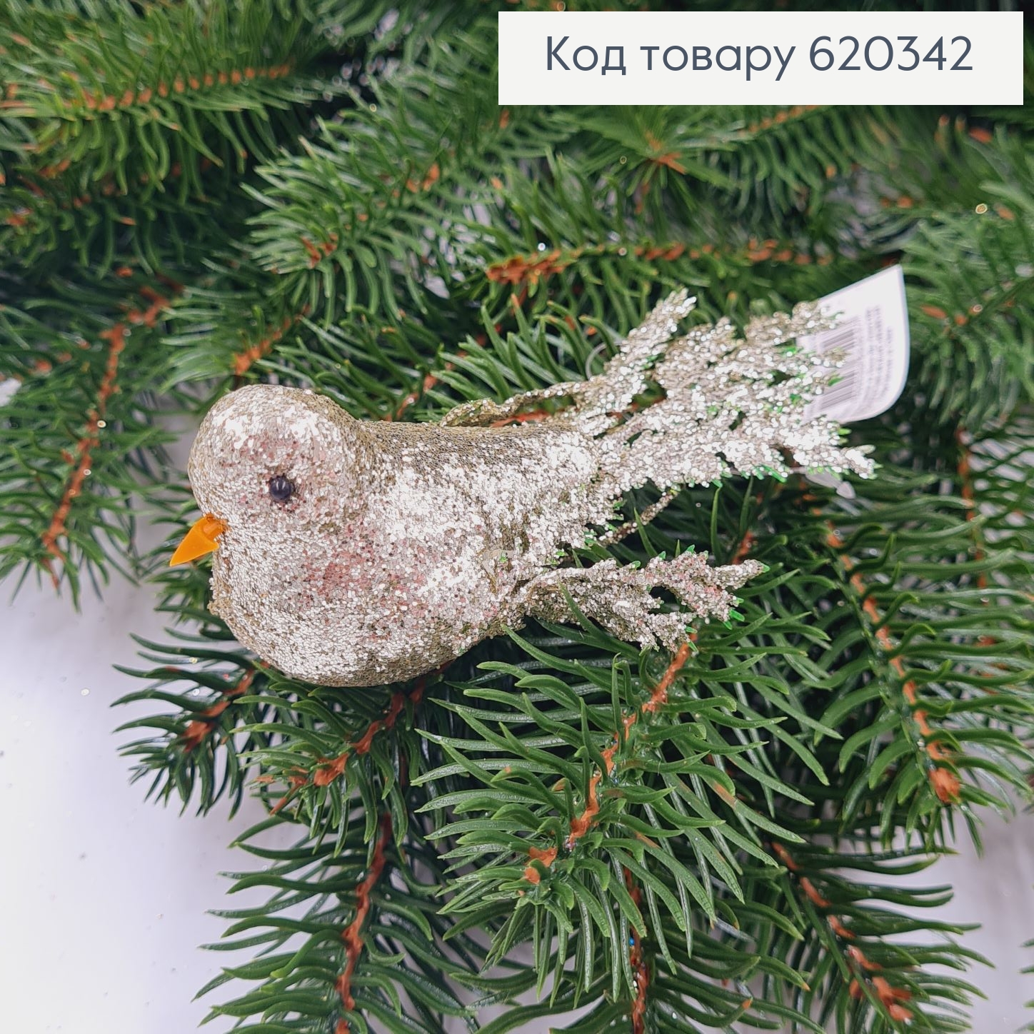 Набір (2шт) : ПТАШКА на заколці, БІЛОГО кольору+Блиск, 17см, новорічний декор 620760 фото