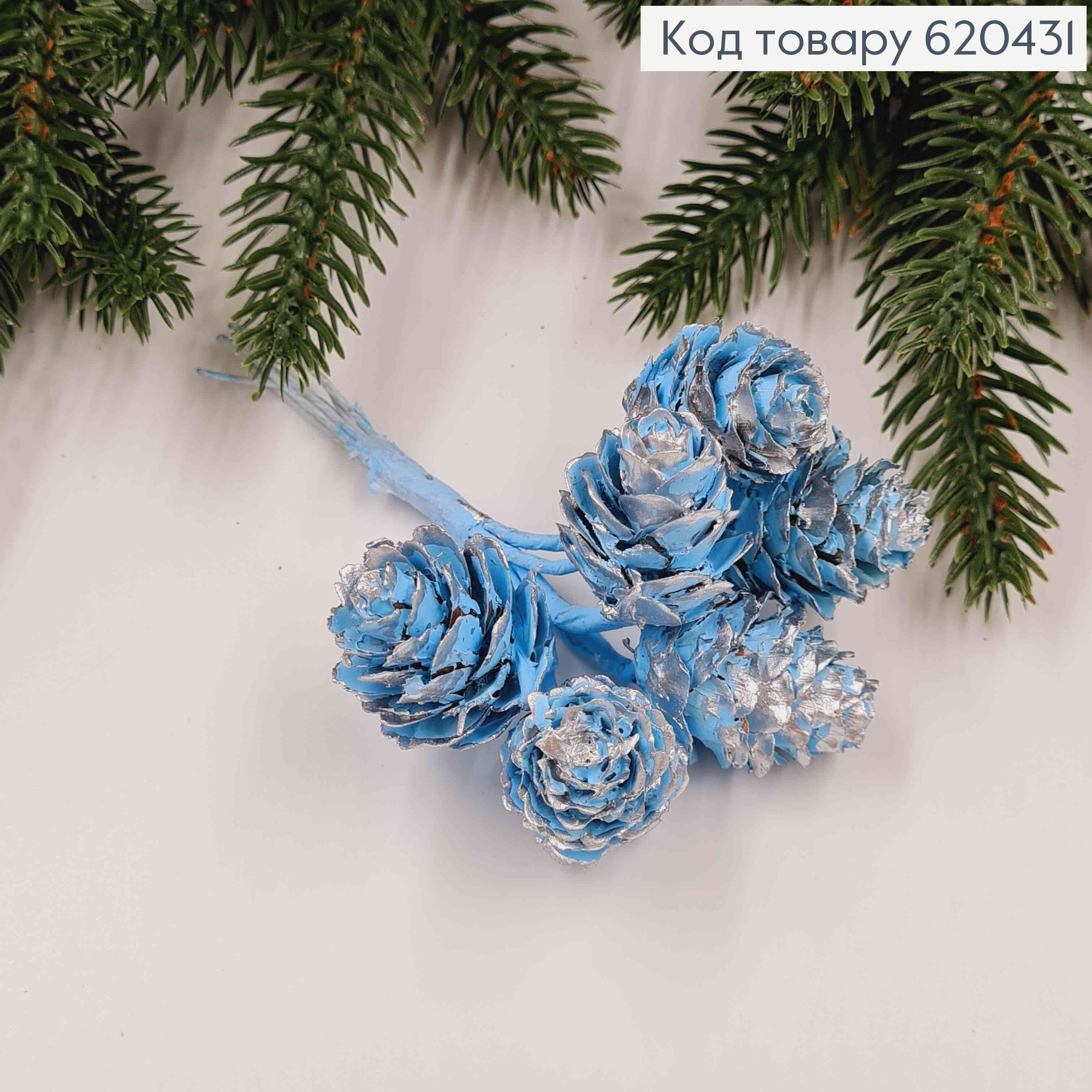 Пучок Шишок (6шт) БЛАКИТНОГО кольру зі СРІБНИМ блиском (шишка 2,5*2см, + металева гілочка 7см)