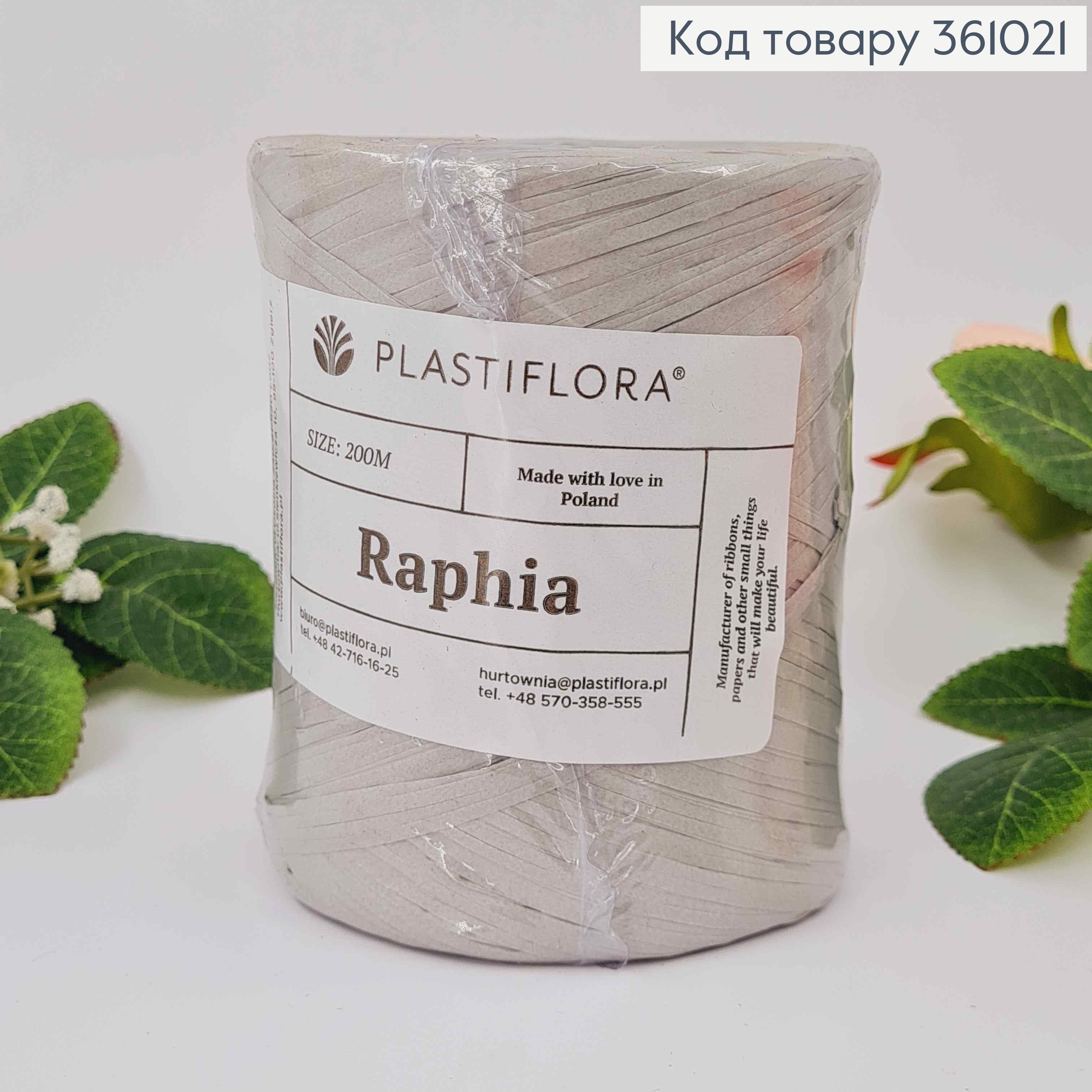 Рафія в мотку, СІРА, 200метрів, виробник Польща