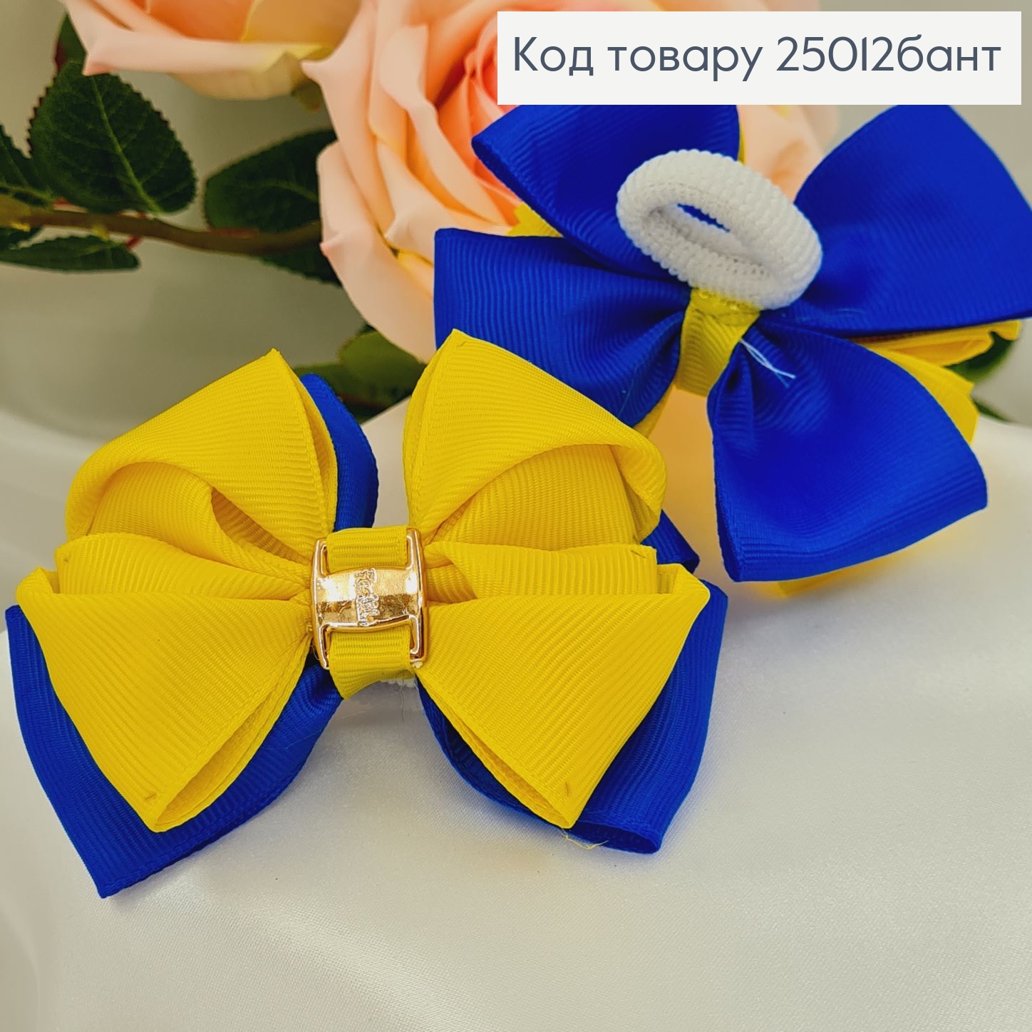 Резинка, БАНТ репсовий, Жовто-Синього кольору з додатком у вигляді квітки, 10*8см, Ручна робота 276008 фото