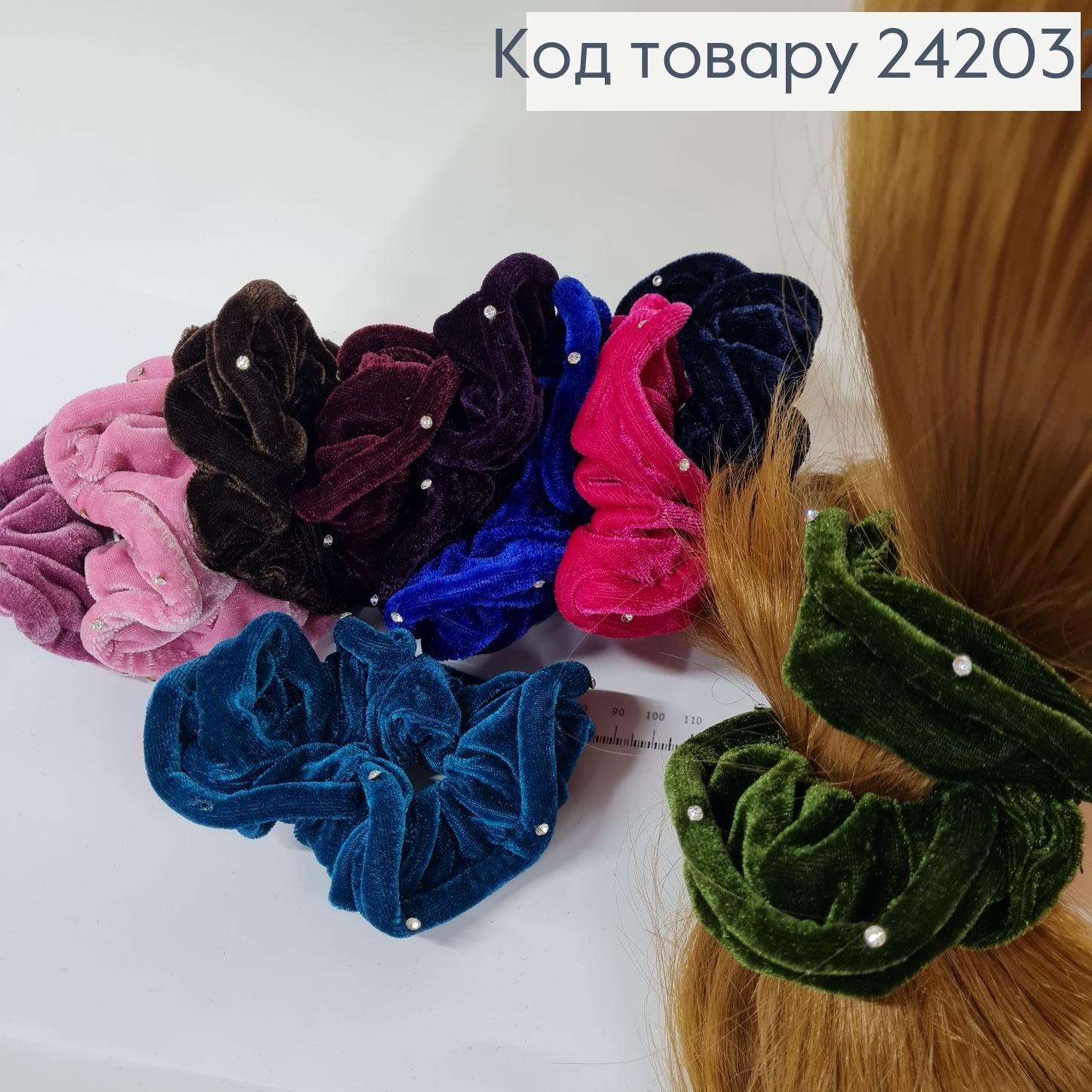 Резинка велюр  об'ємна кольорова з камінцями (ціна за 1 шт) 242043 фото