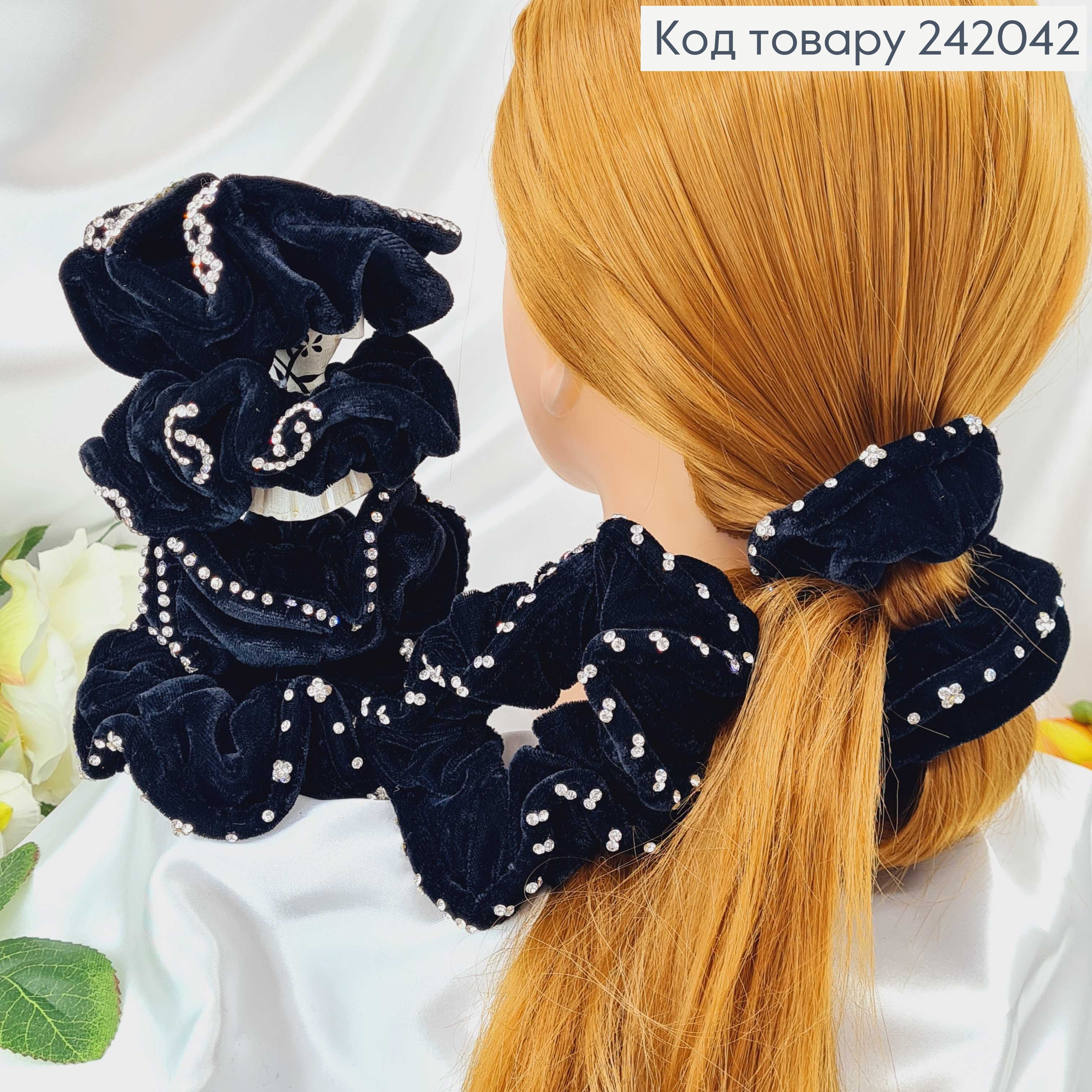 Резинка об'ємна Велюр прикрашена камінцями, 10см, Чорного кольору 244187 фото