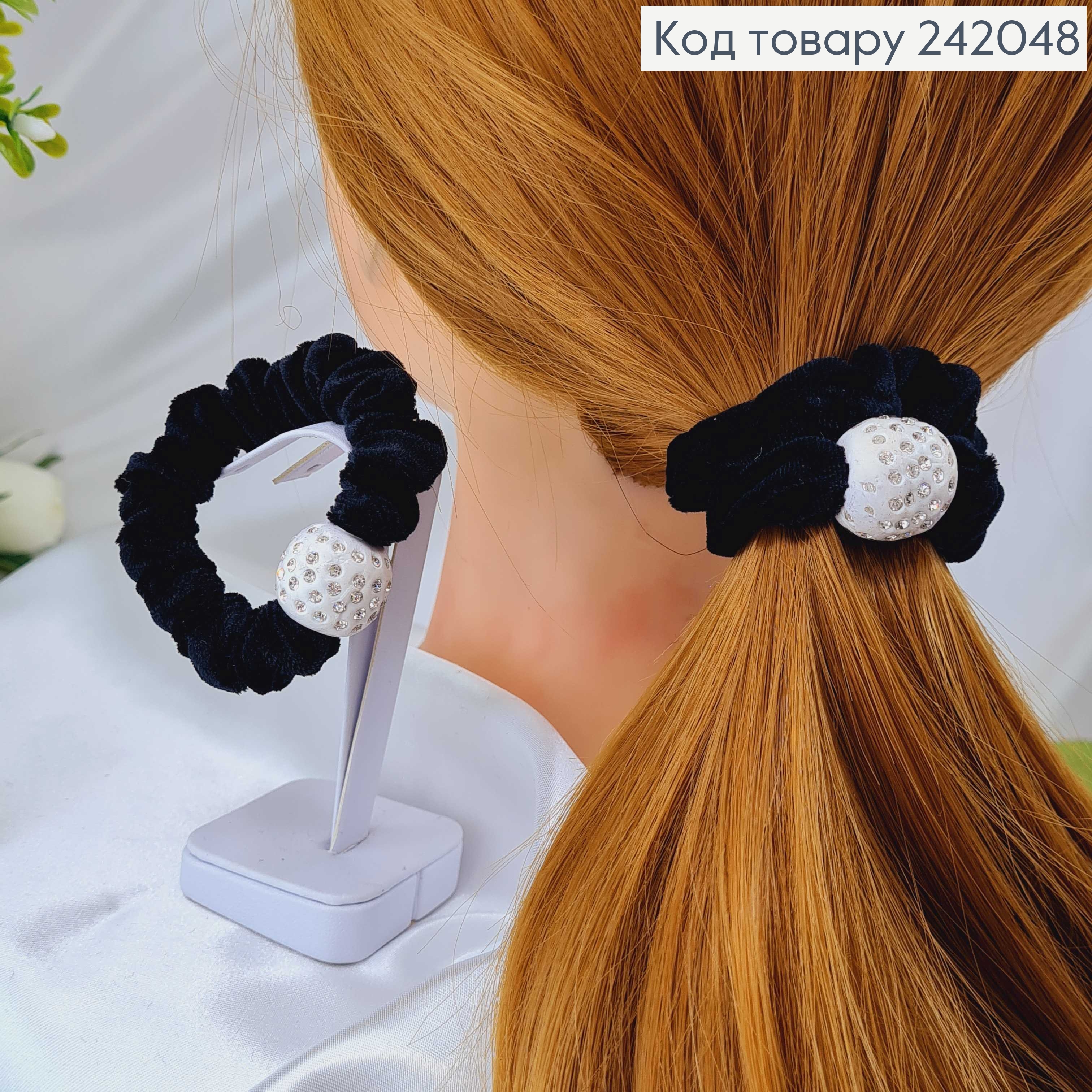 Резинка велюр об'ємна чорна з кулькою в камінцях (ціна за 1 шт)