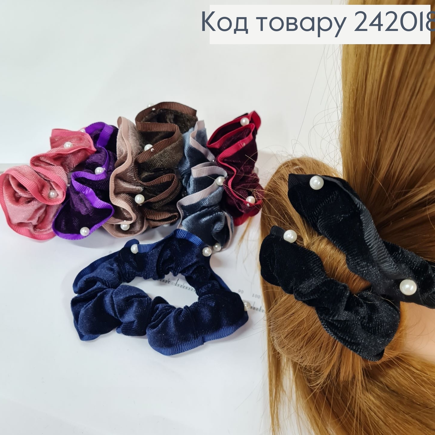 Резинка велюр  об'ємна кольорова з камінцями (ціна за 1 шт) 242043 фото