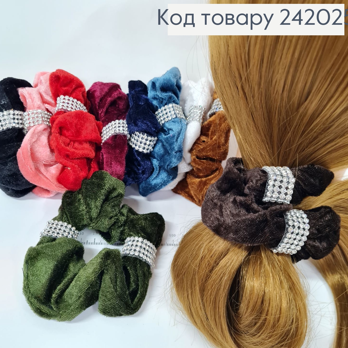Резинка велюр  об'ємна кольорова з камінцями (ціна за 1 шт) 242043 фото