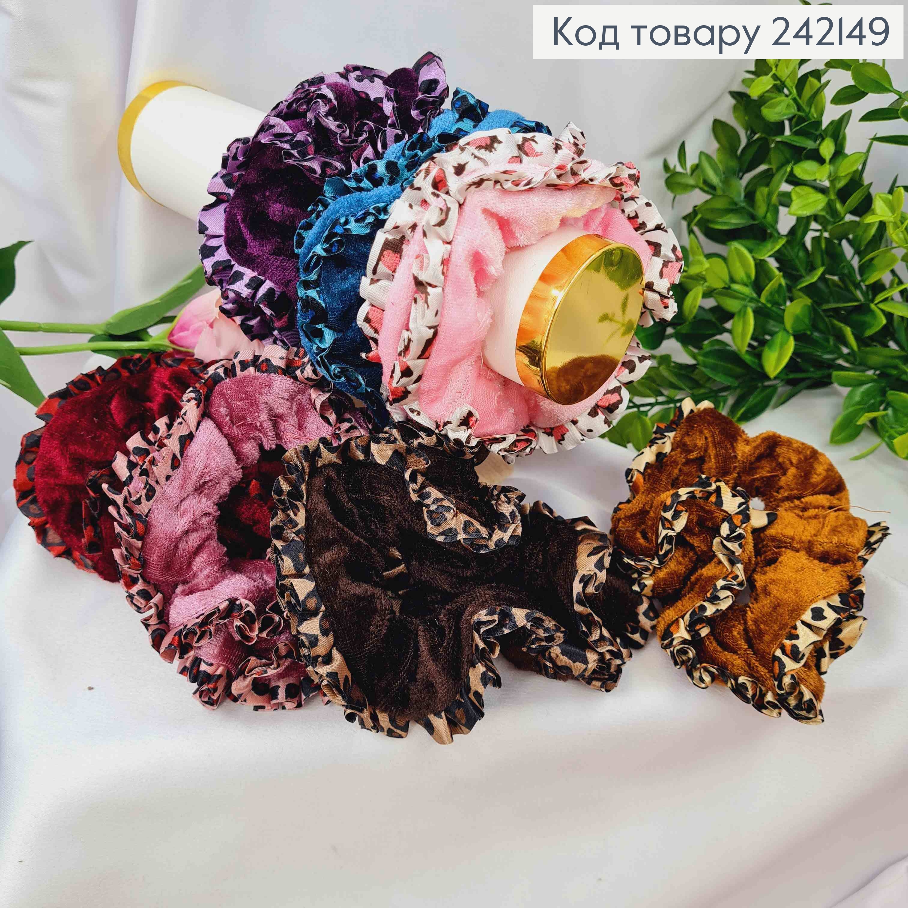Резинка Велюр з ЛЕОПАРДОВИМ обідком, кольори в асортименті, 12см