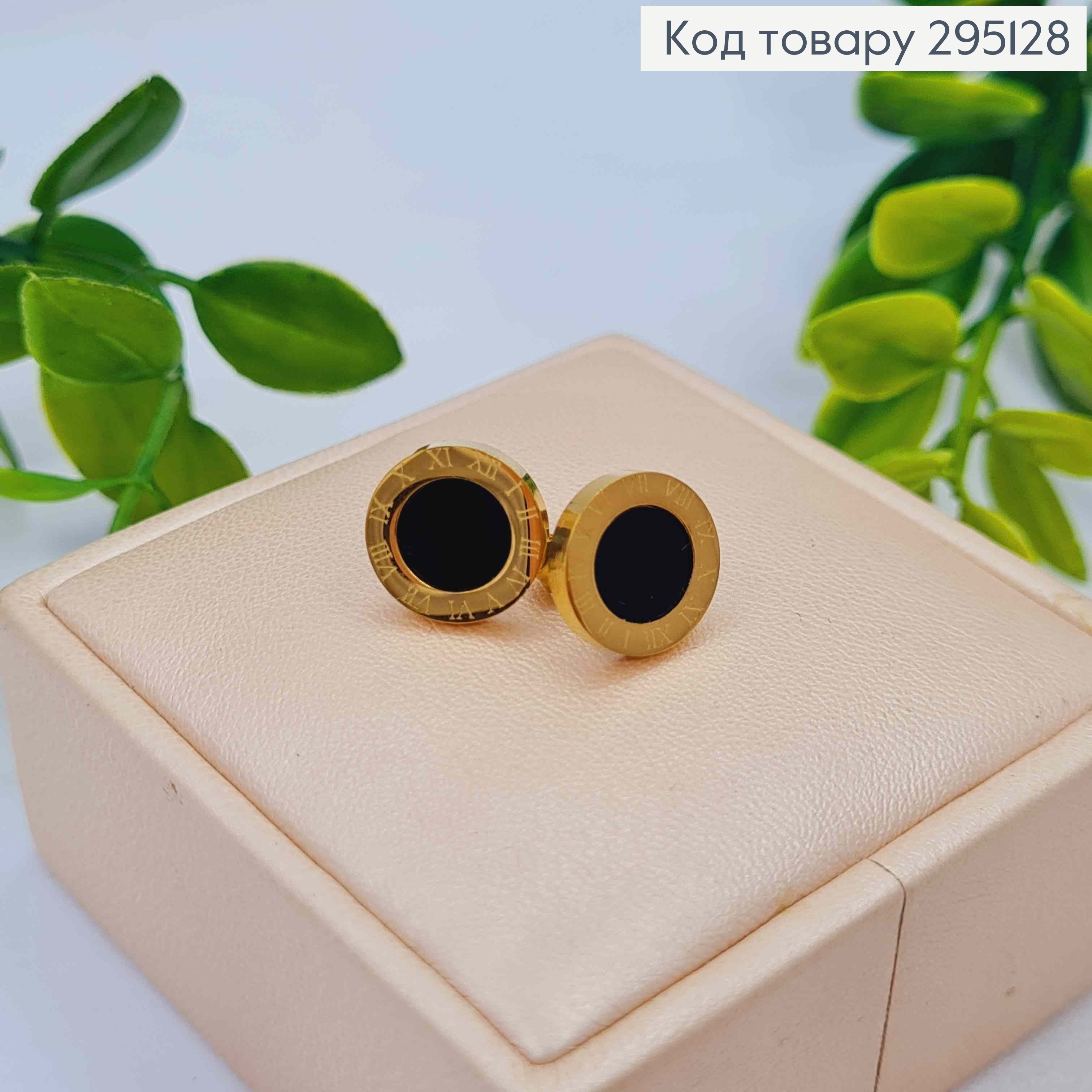 Сережки гвіздки "Римський годинник" з Чорною емаллю, лимонного кольору, 1,1см