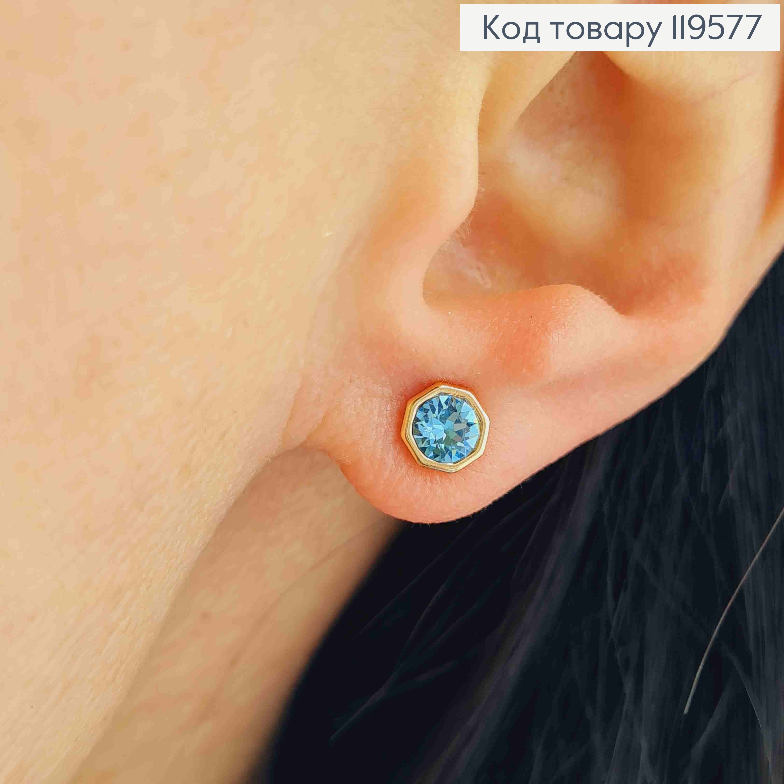 Сережки гвіздки з Блакитним каменем Сваровські,  0,9см, XUPING 18K 119848 фото