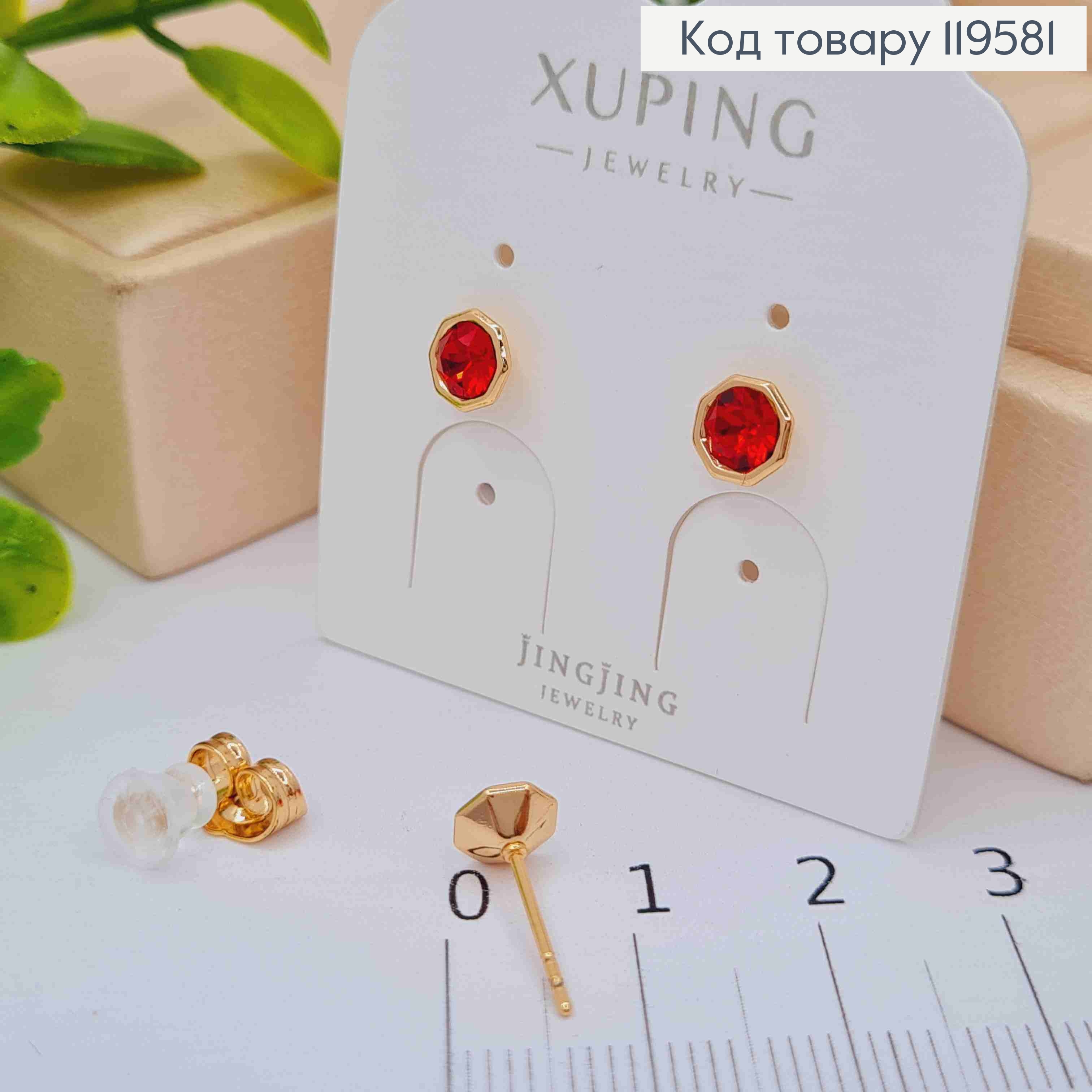 Сережки з квадратним Червоним каменем Сваровскі, довж. 1,5см, застібка левербек, Xuping 18К 119741 фото