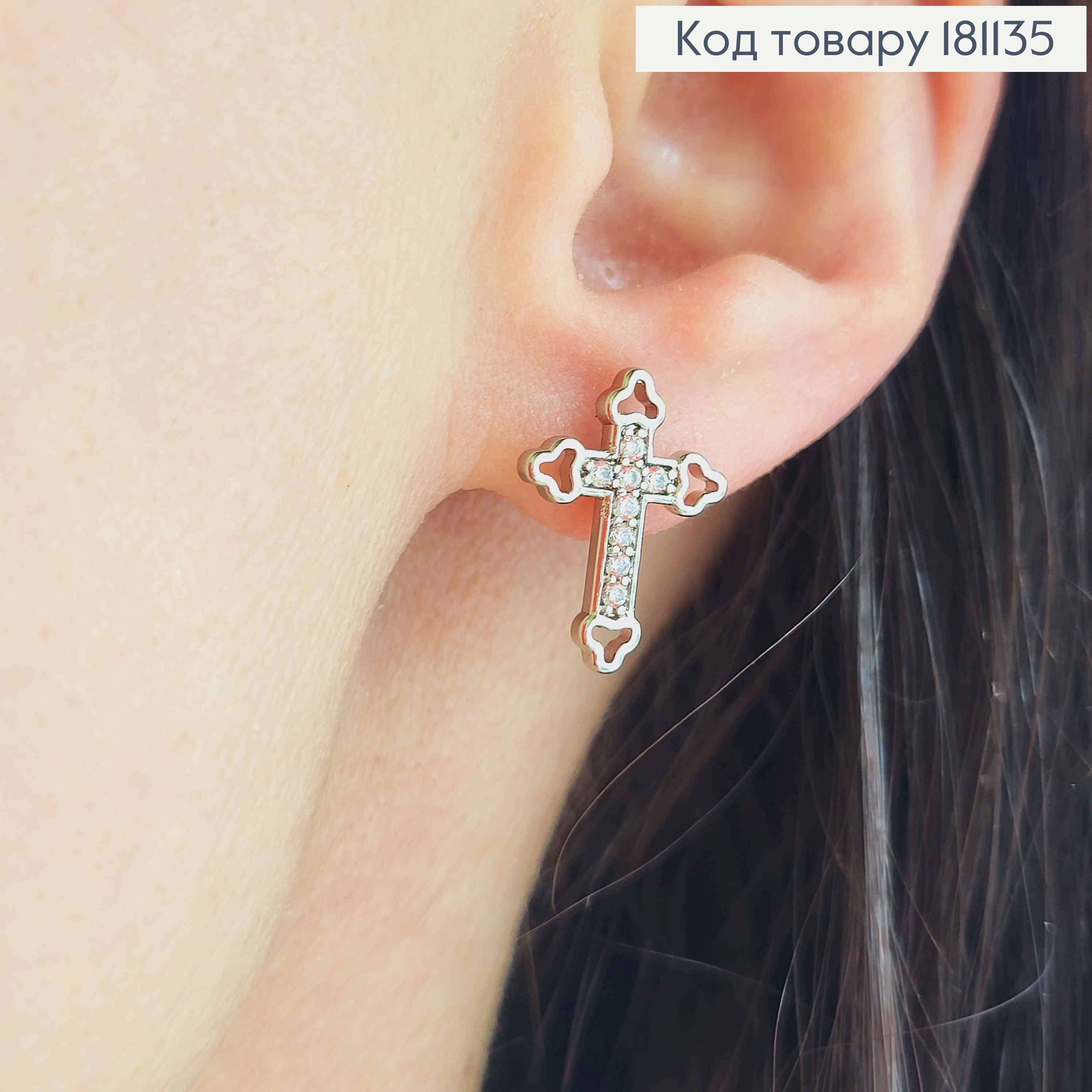 Сережки гвоздики родовані, Хрестики в камінцях, 2*1,2см, Xuping