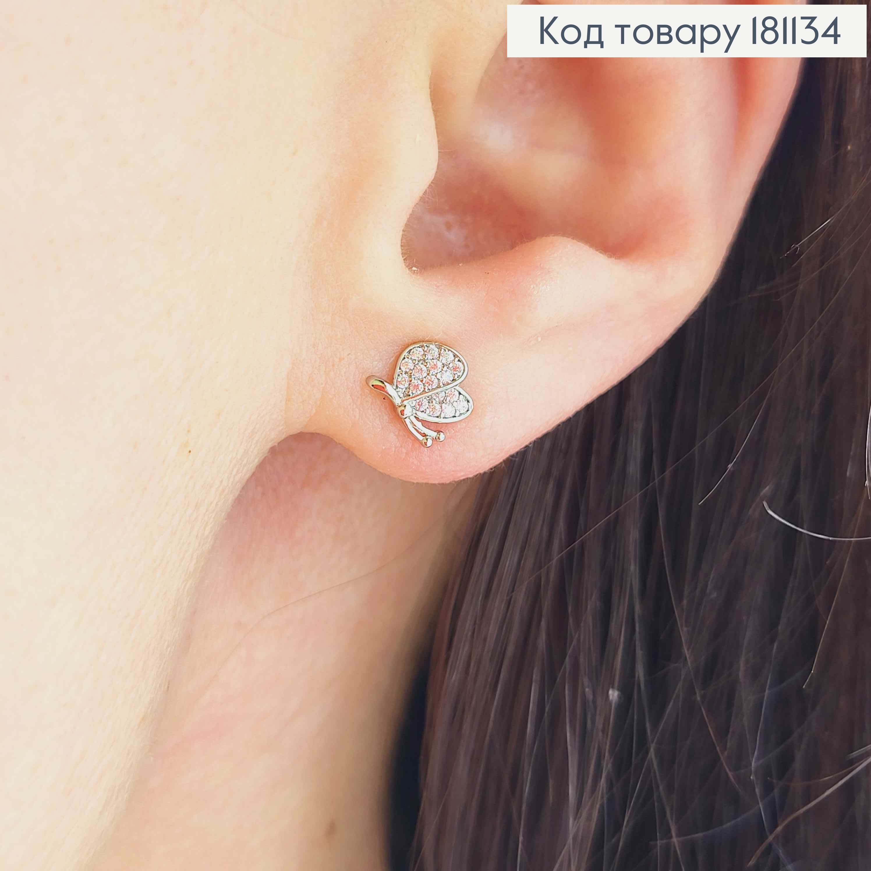 Сережки гвоздики родовані, маленькі метелики в камінцях, 5мм, Xuping