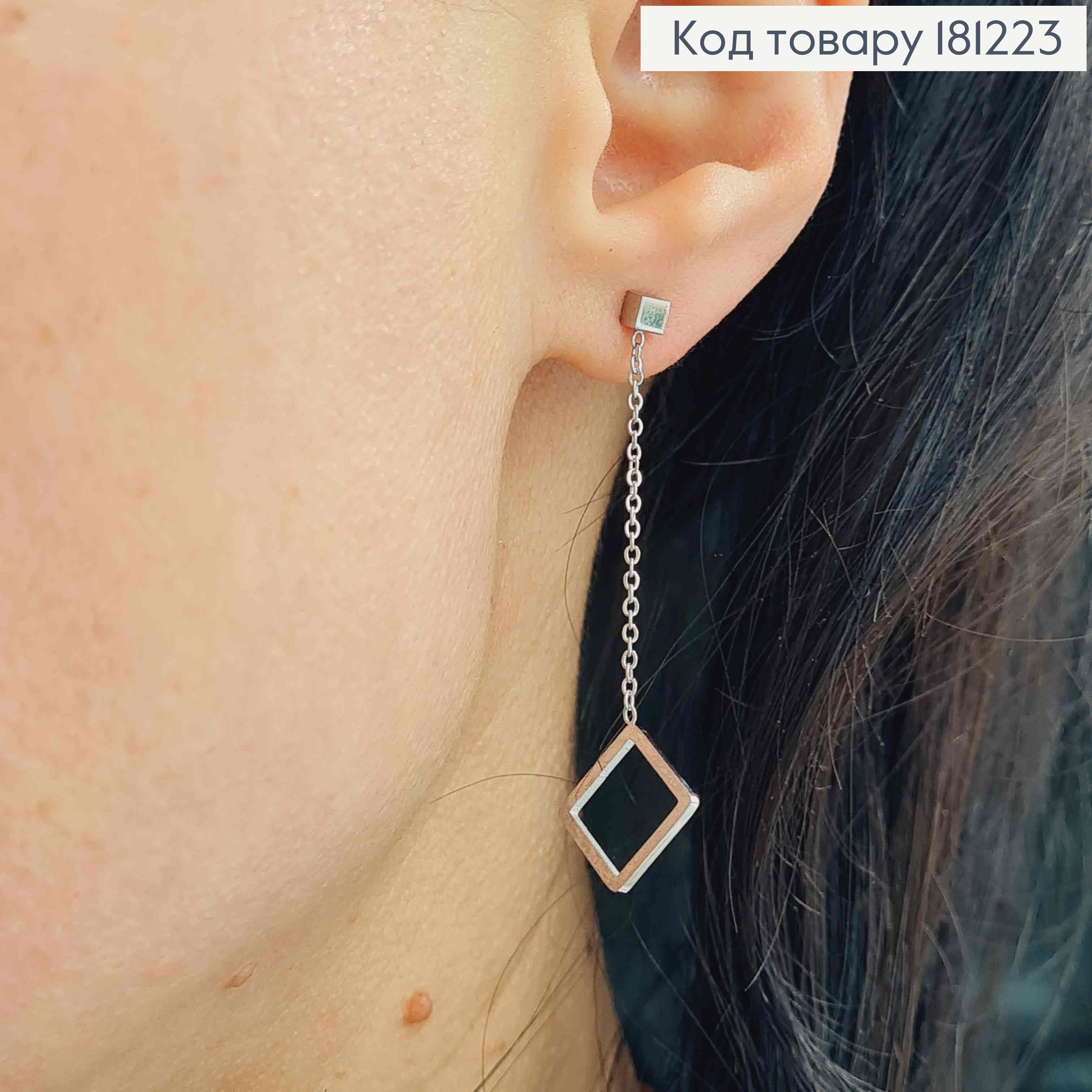 Сережки гвоздики родовані, з квадратиком та підвіскою ромбиком, 5см, Xuping