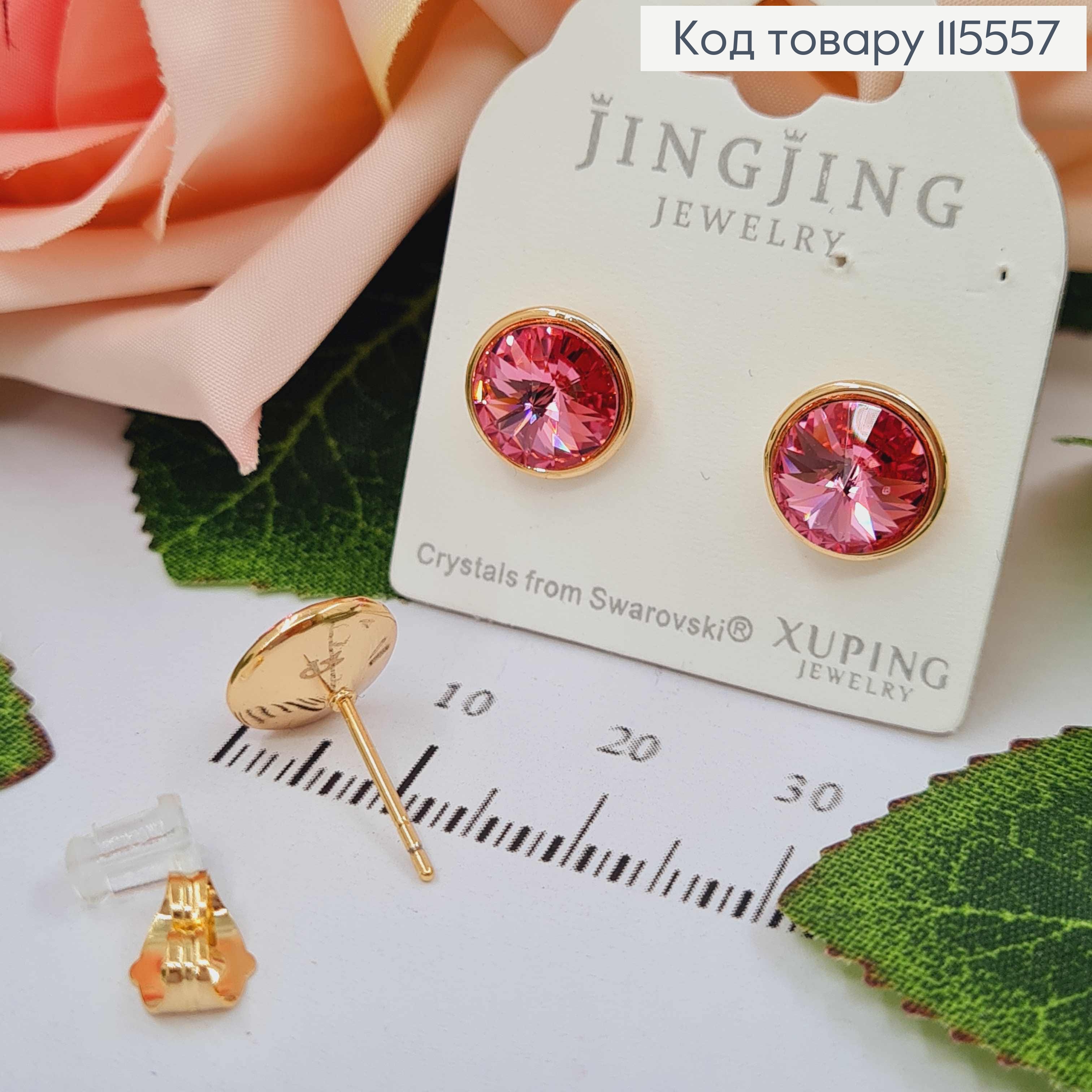 Сережки гвоздики, з рожевим камінцем Сваровскі, в оправі, 1см, Xuping 18K