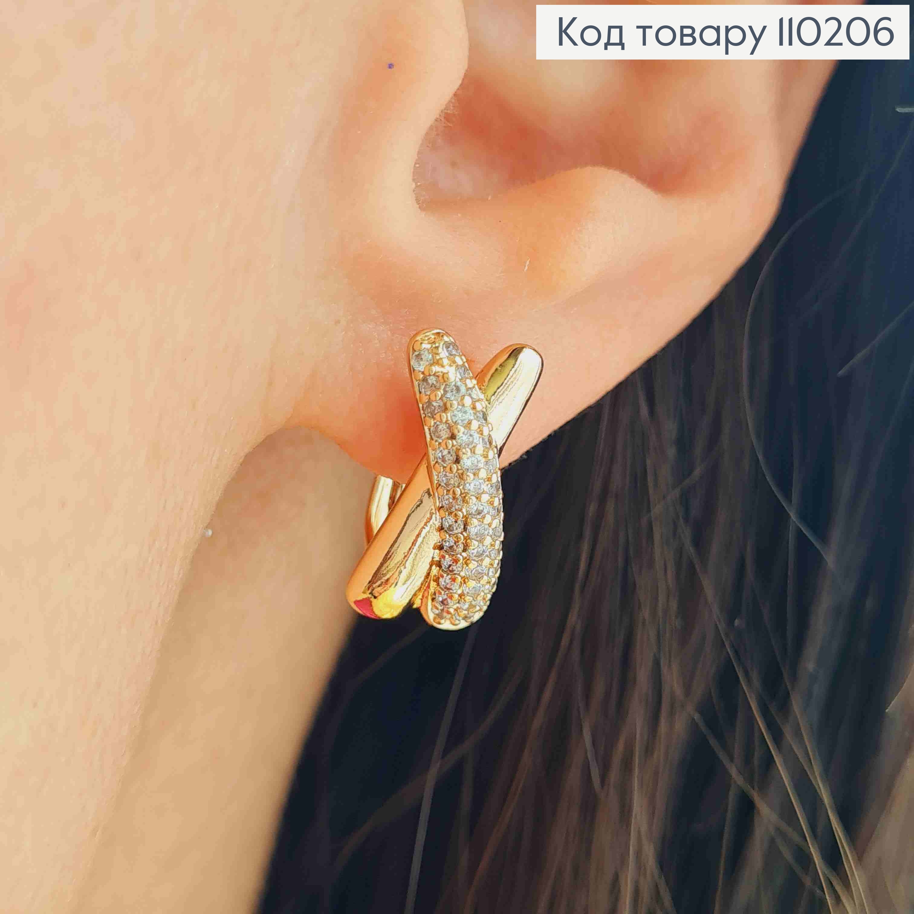 Сережки "Х" прикрашені Блискучими камінцями, довжина 1,6см, англійська застібка, Xuping 18К