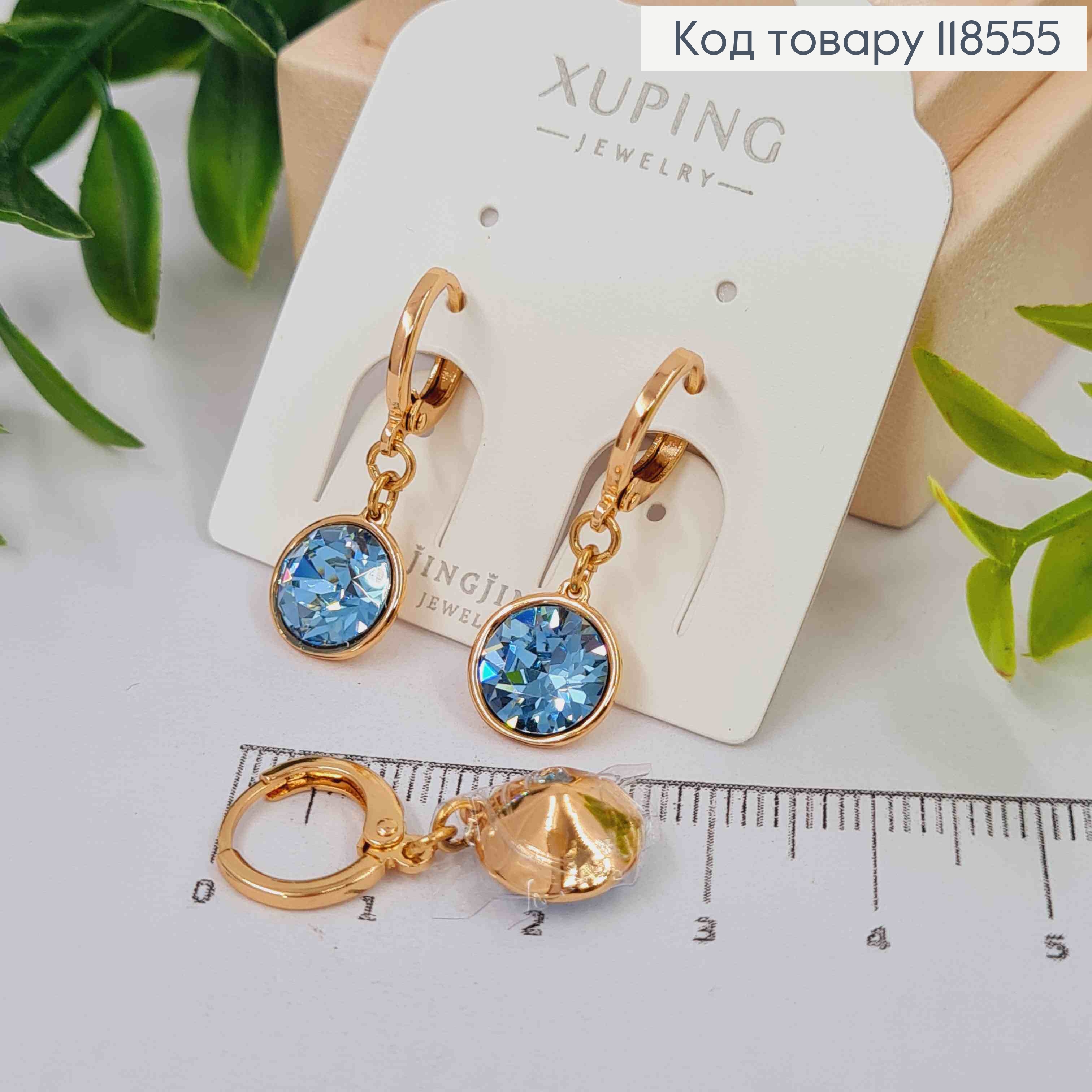 Сережки кільця (1,1) з підвісним Блакитним каменем Сваровскі (1см), Xuping 18К