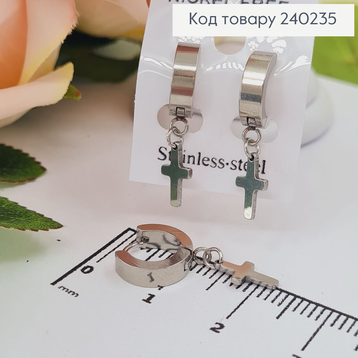 Сережки кільця 1,2см Хрестики срібного кольору 1,2*0,6см, Stainless Steel