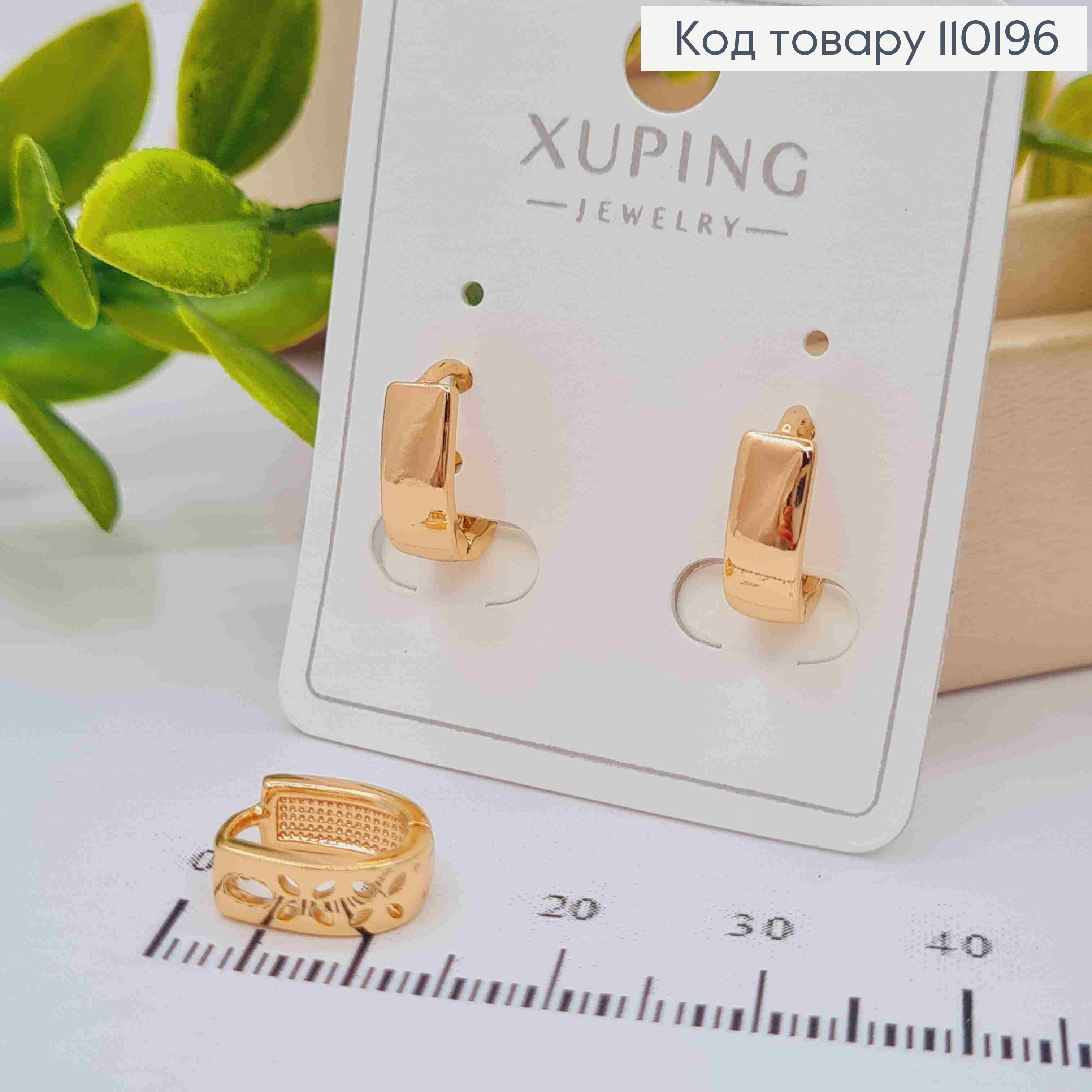 Сережки прямокутні Фактурні,  довжина 1,7см, англійська застібка, Xuping 18К 110203 фото