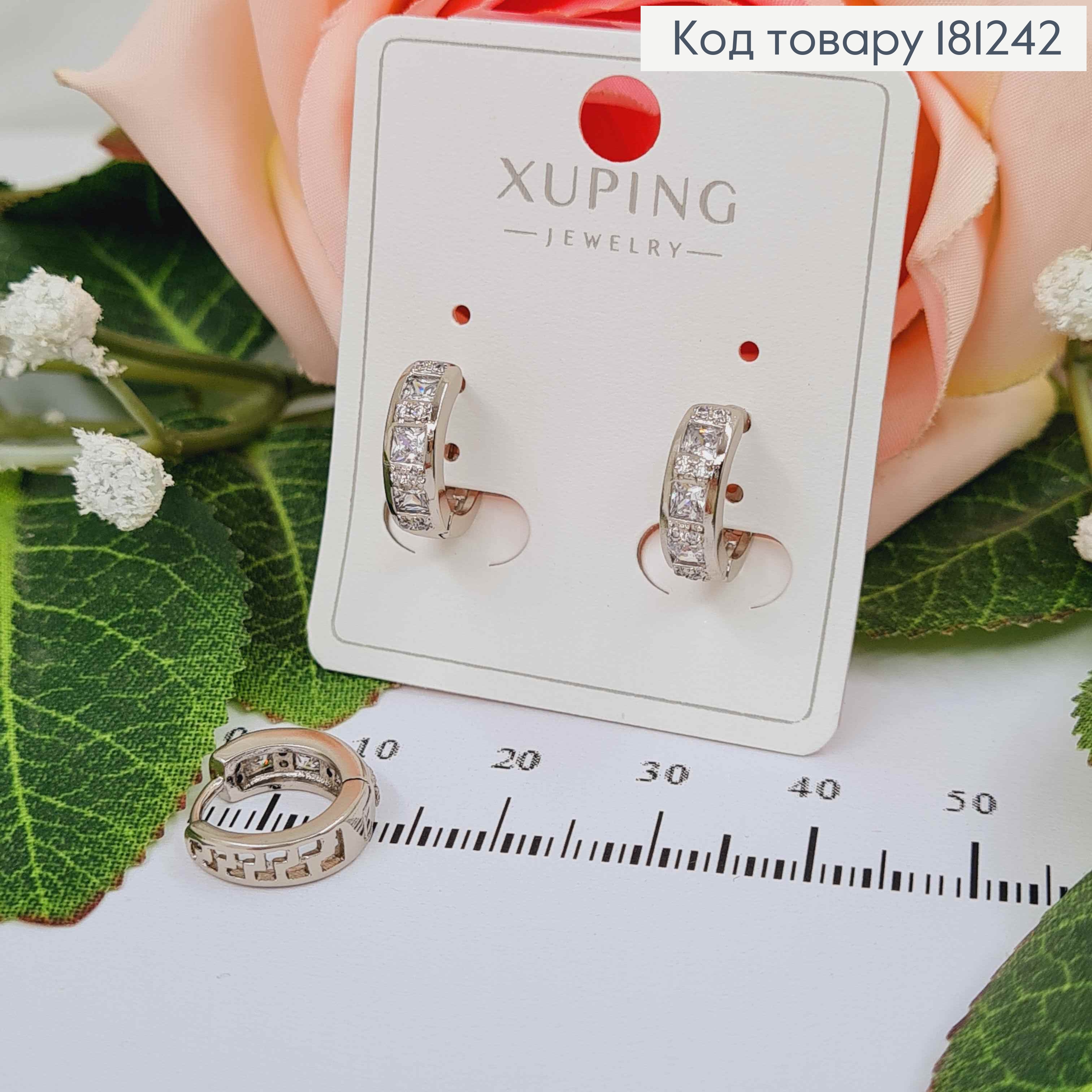 Сережки кільця родовані 1см, з квадратними камінцями в оправі, Xuping
