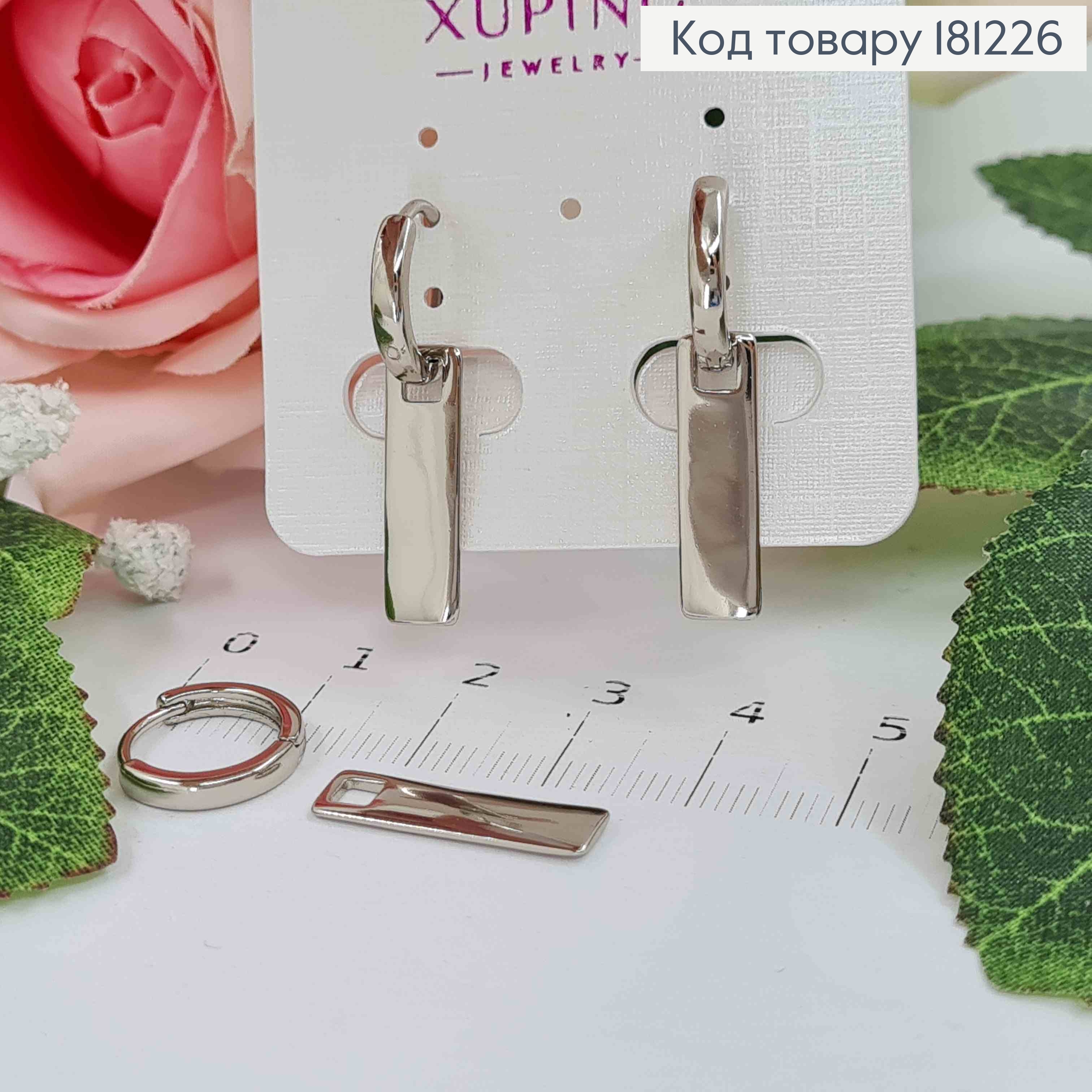Сережки кільця родовані, з підвісками пластинками 1,9см, Xuping