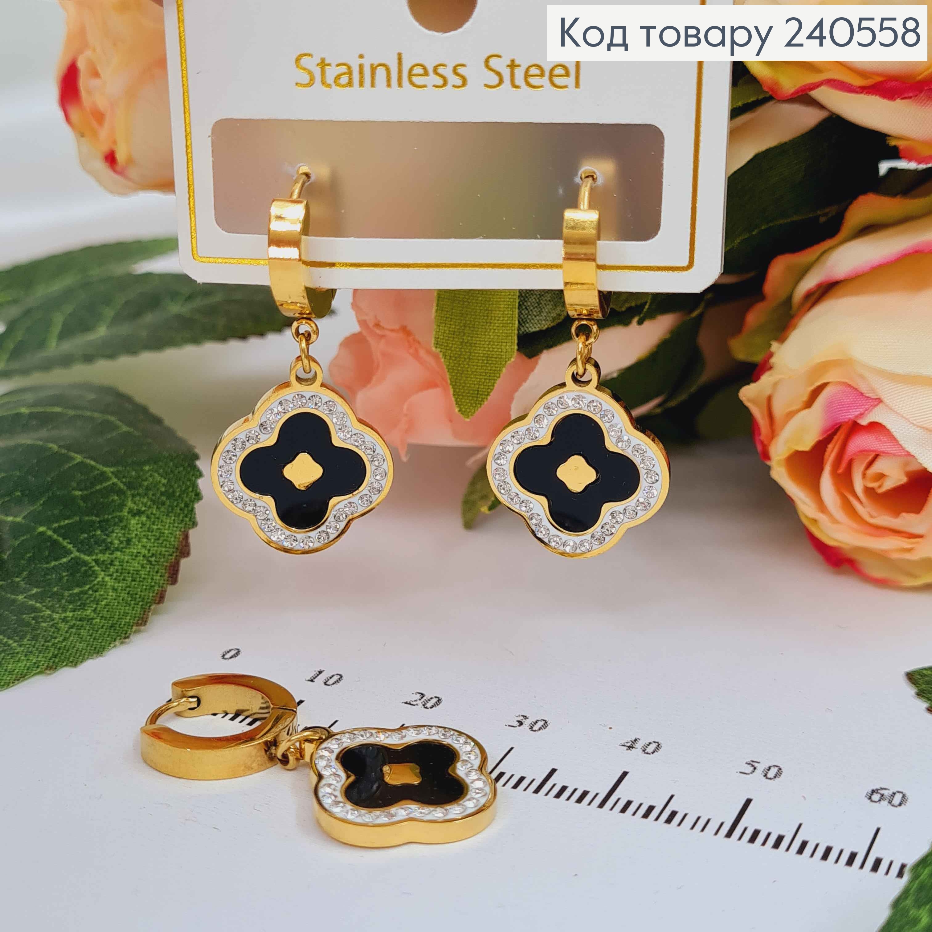 Сережки кільця, з підвісками "Van Cleef" з камінцями, 1,5см, лимонні, сталь Stainless Steel