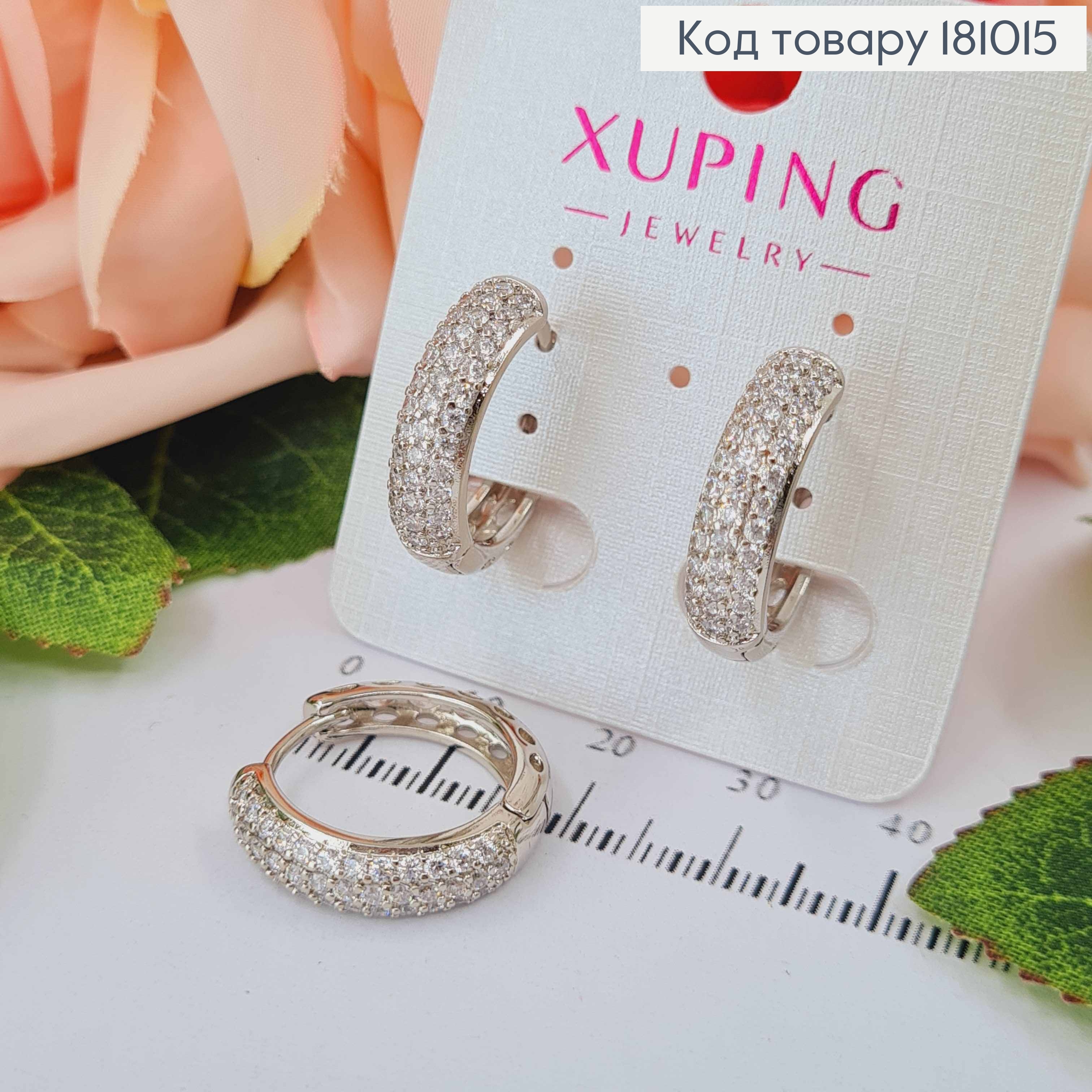 Сережки кільця родовані 2см, з трьома рядами камінців, Xuping