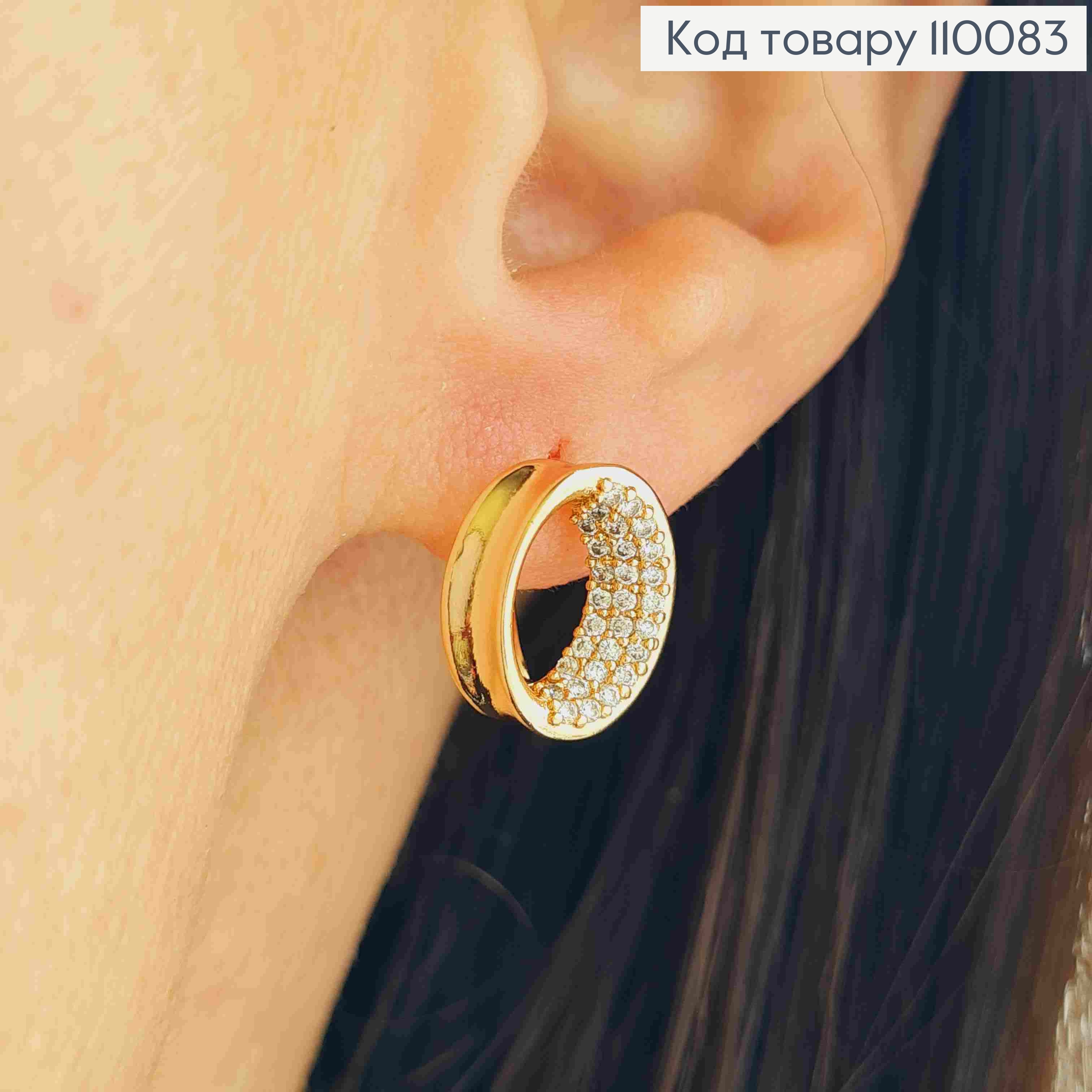Сережки кільця "Хвильки" прикрашені Блискучими камінцями, діаметр 1,5см, Xuping 18K 110078 фото