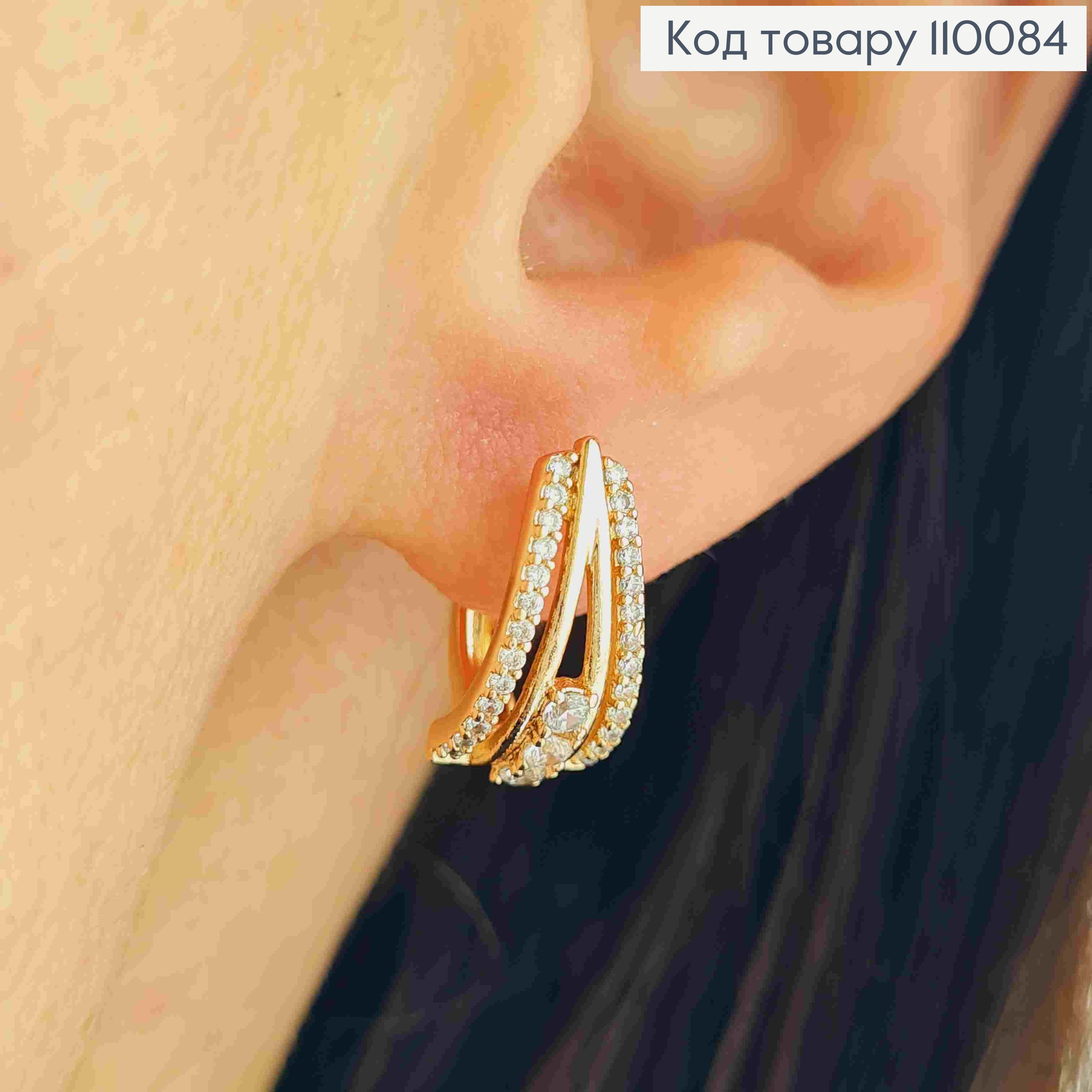 Сережки кільця "Хвильки" прикрашені Блискучими камінцями, діаметр 1,5см, Xuping 18K 110078 фото