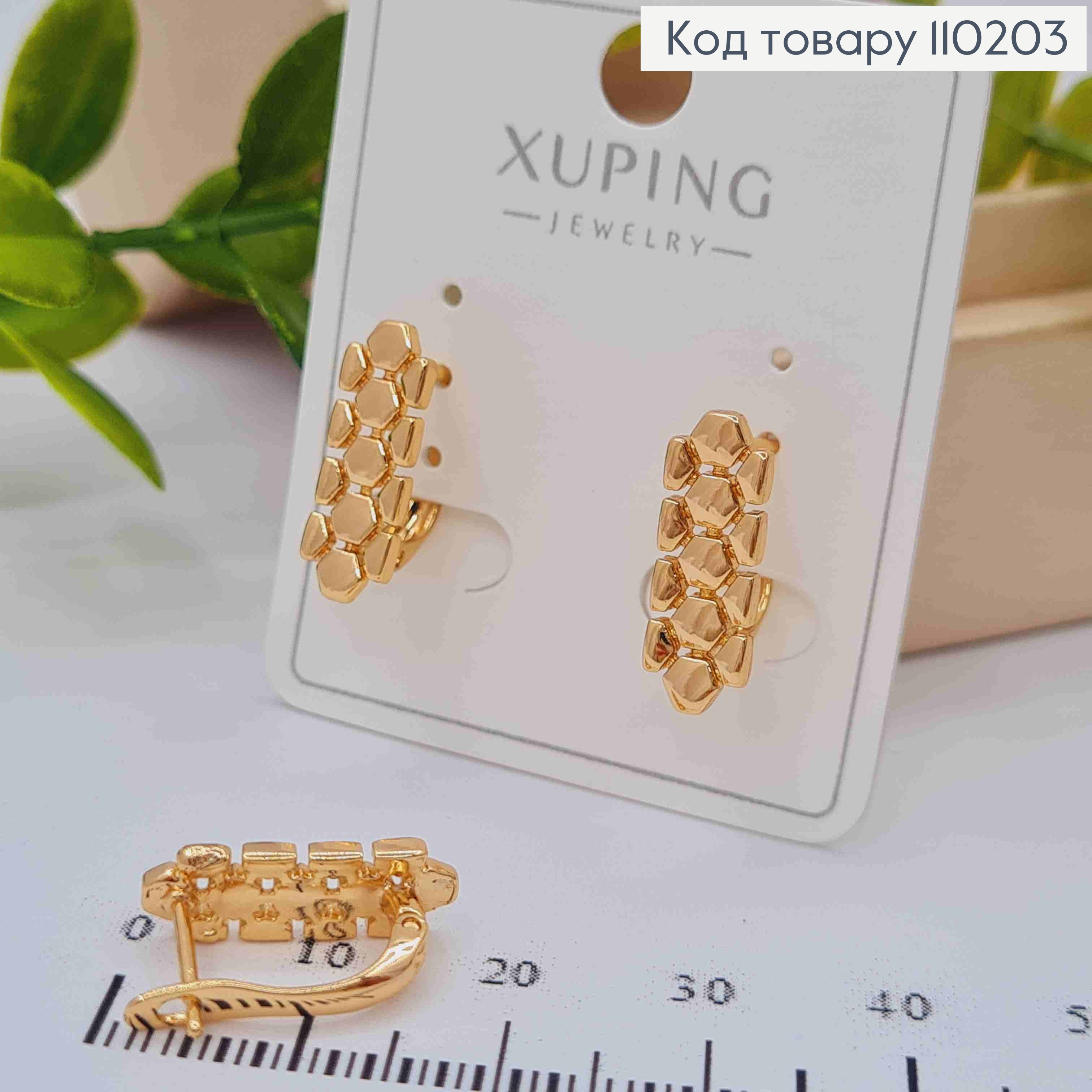 Сережки прямокутні Фактурні, довжина 1,7см, англійська застібка, Xuping 18К