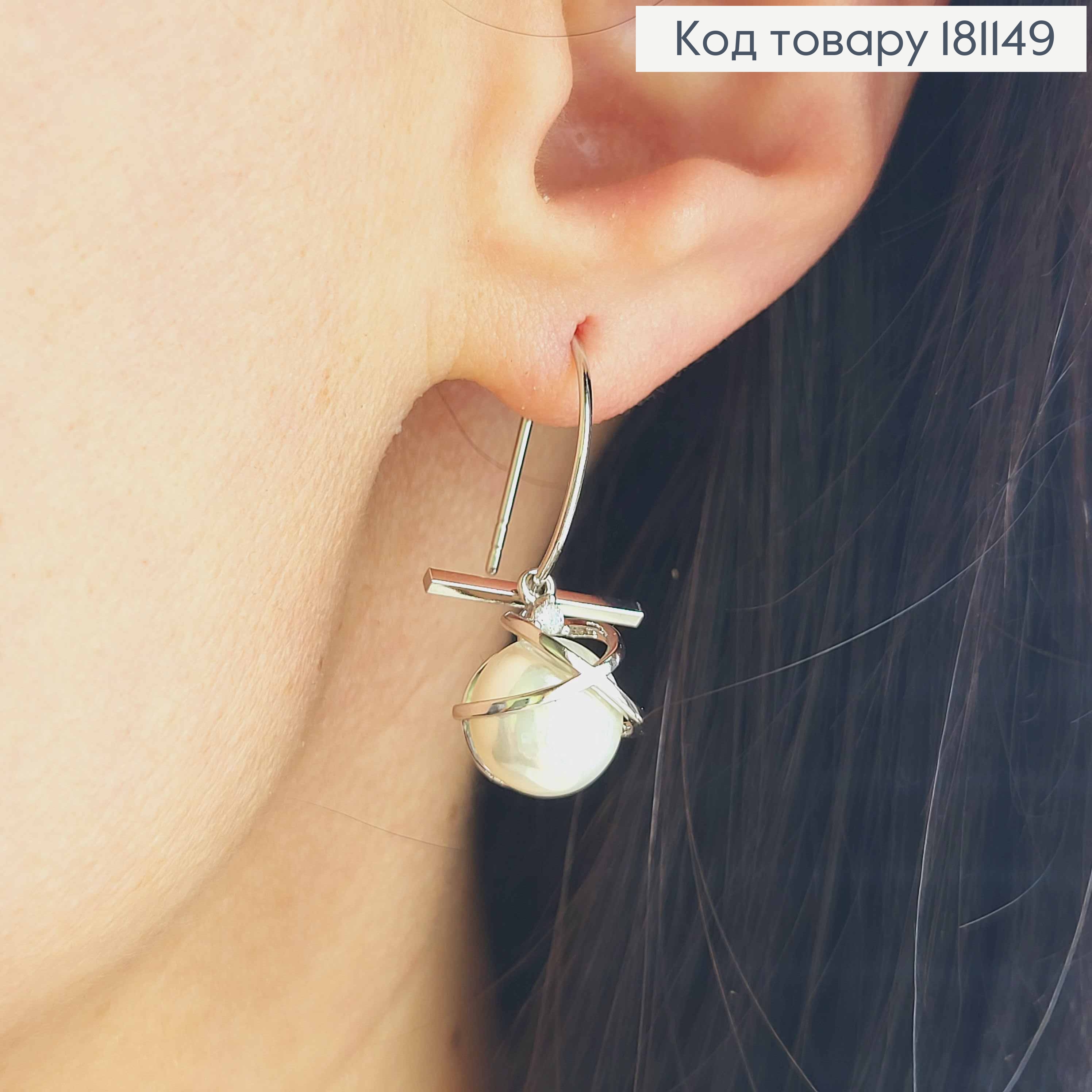 Сережки родовані гачки, з підвіскою Перлинкою у вузлику, 3см, Xuping