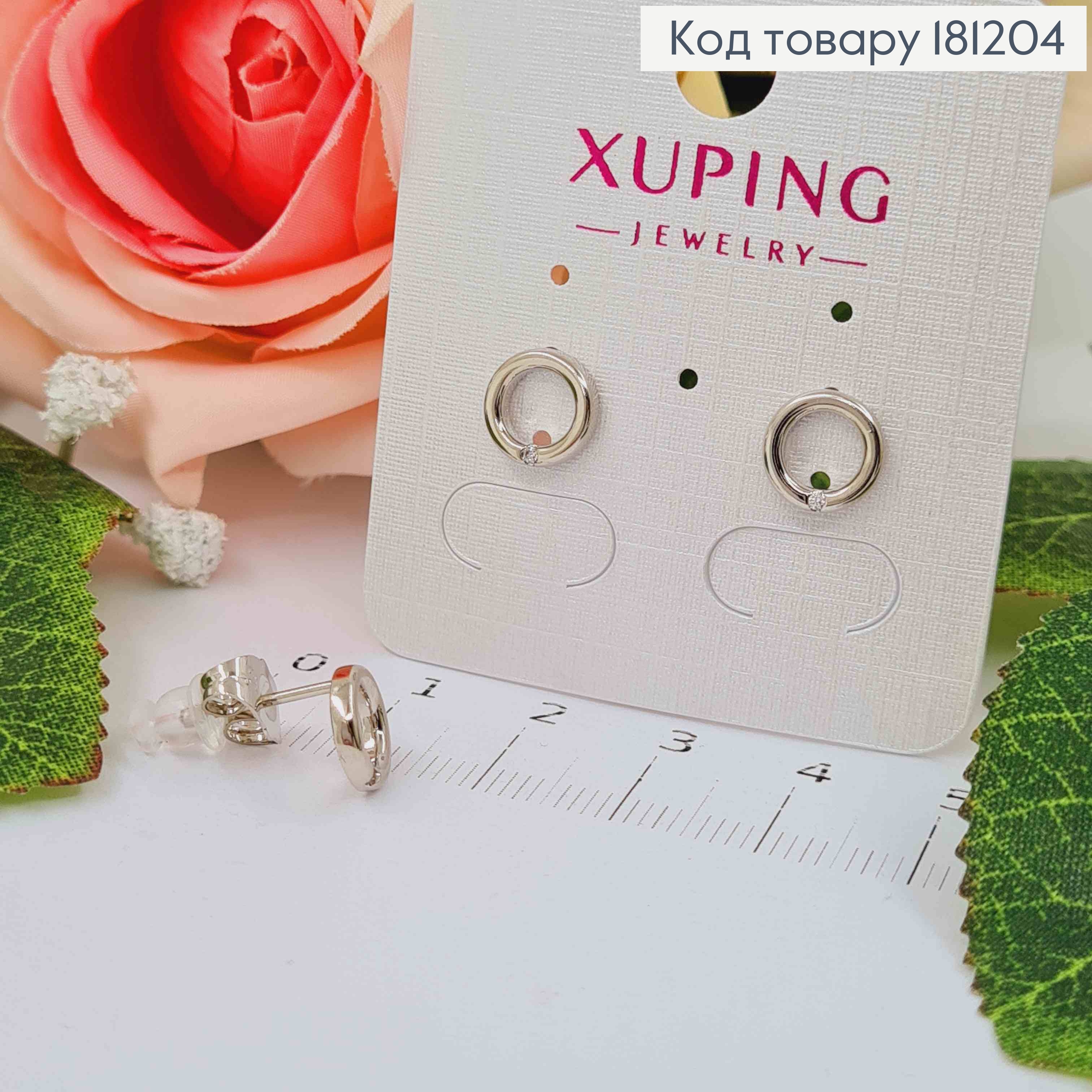 Сережки родовані, гвоздики, колечко з камінцем, 7мм, Xuping