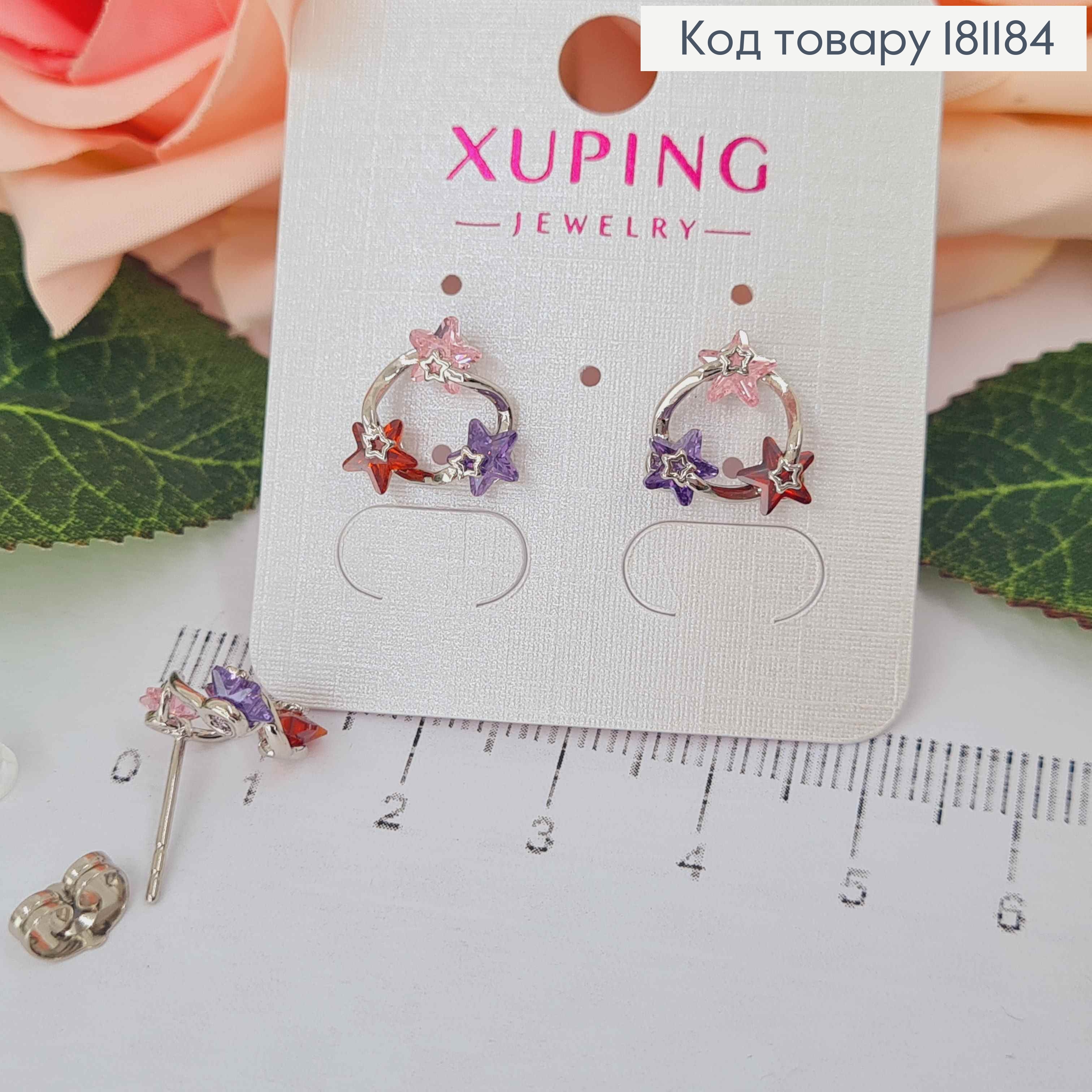Сережки родовані, гвоздики "Сузір'я" з рухливими кольоровими зірочками, 1см, Xuping