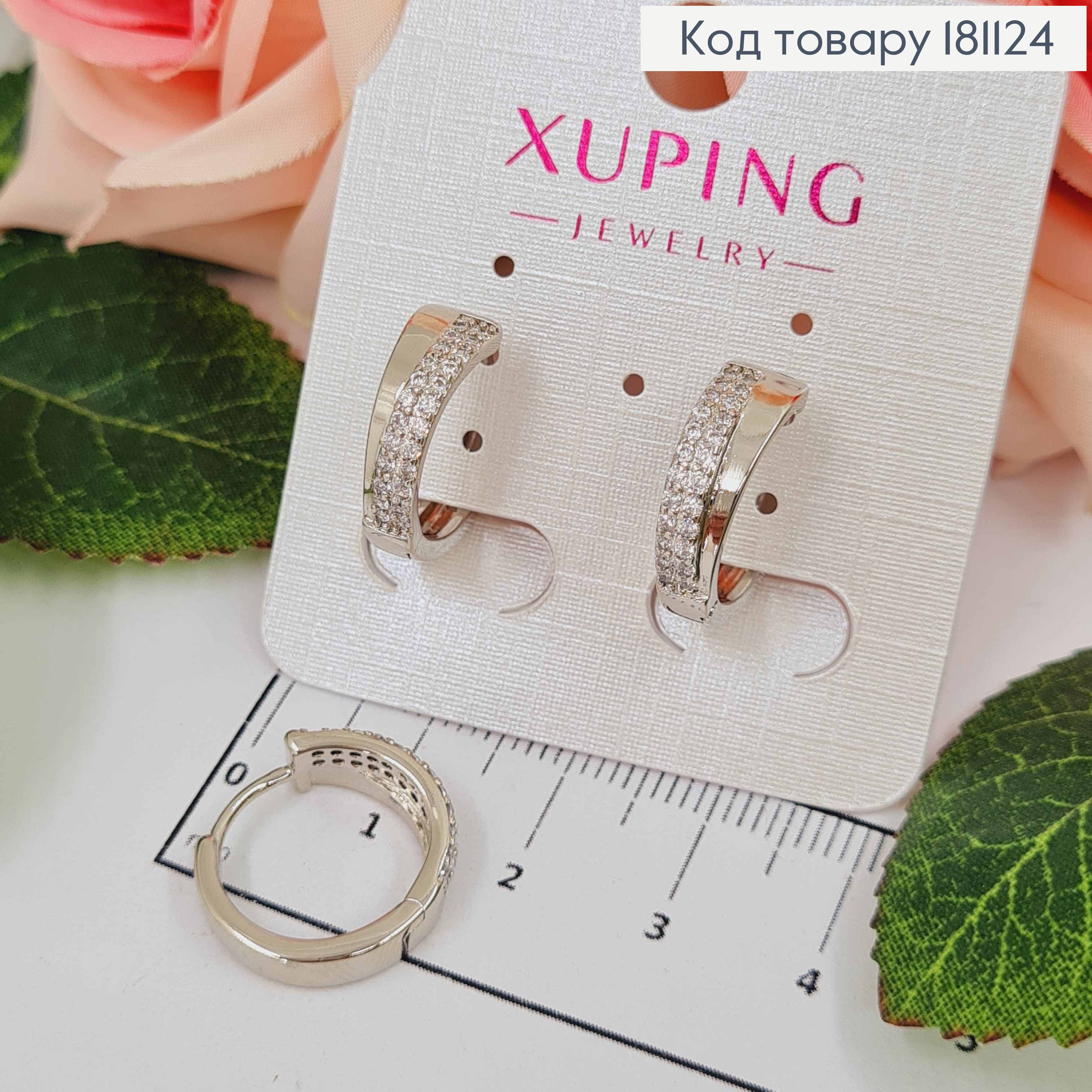 Сережки родовані кільця 1,5см, з двома рядами камінчиків, Xuping