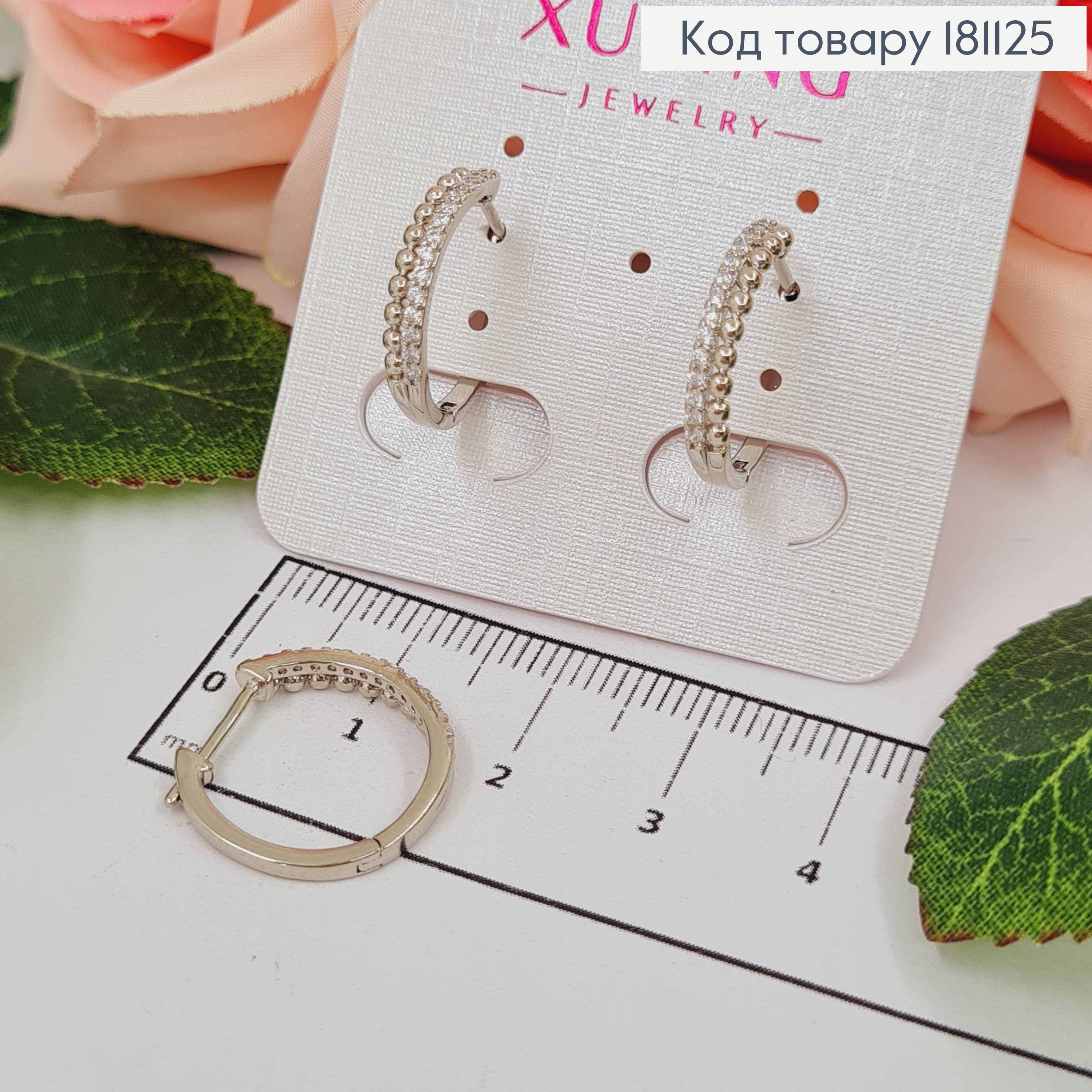 Сережки родовані кільця 1,5см, з кульками та камінями, Xuping