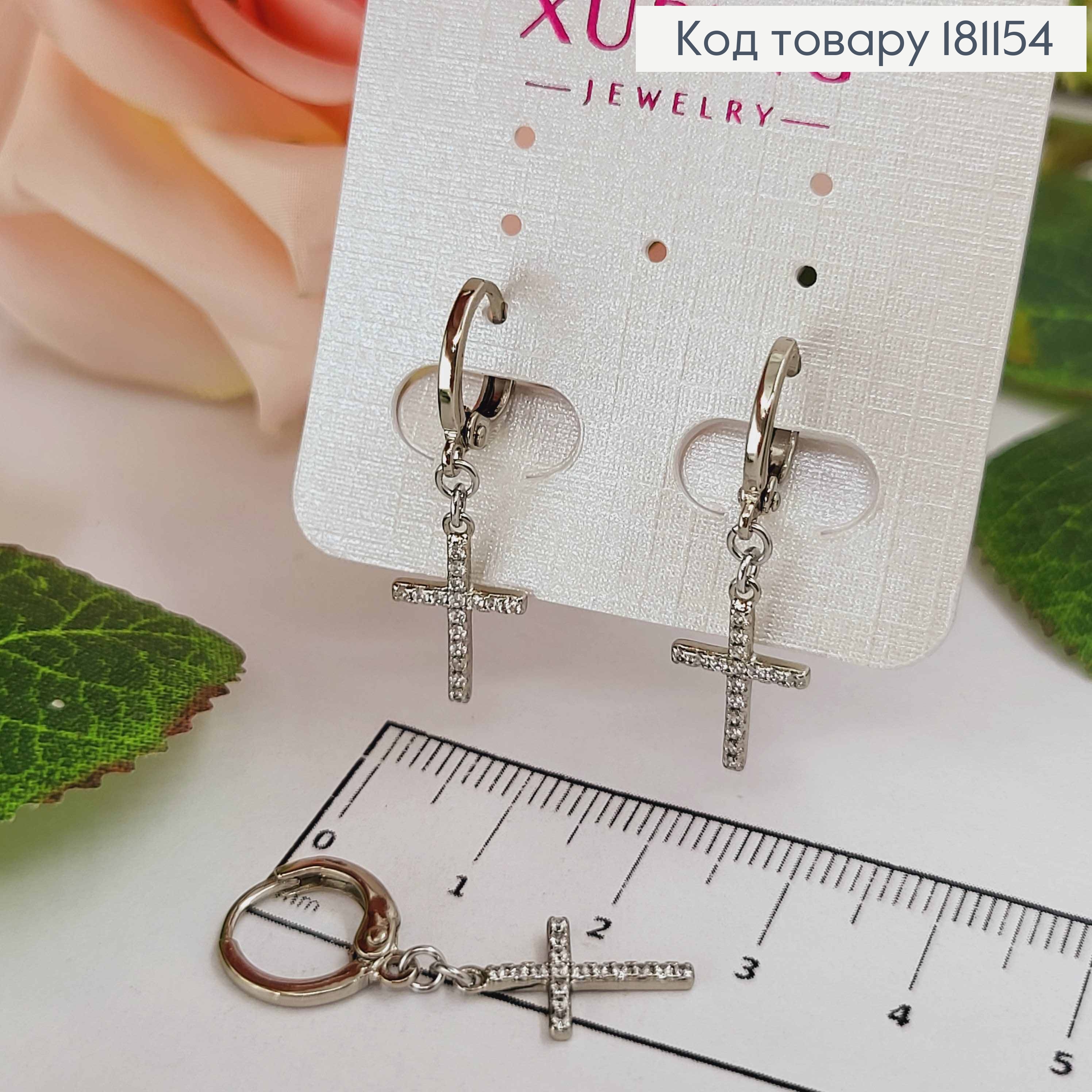 Сережки родовані Кільця 1см, з підвісками Хрестиками 1,5см, в камінцях, Xuping