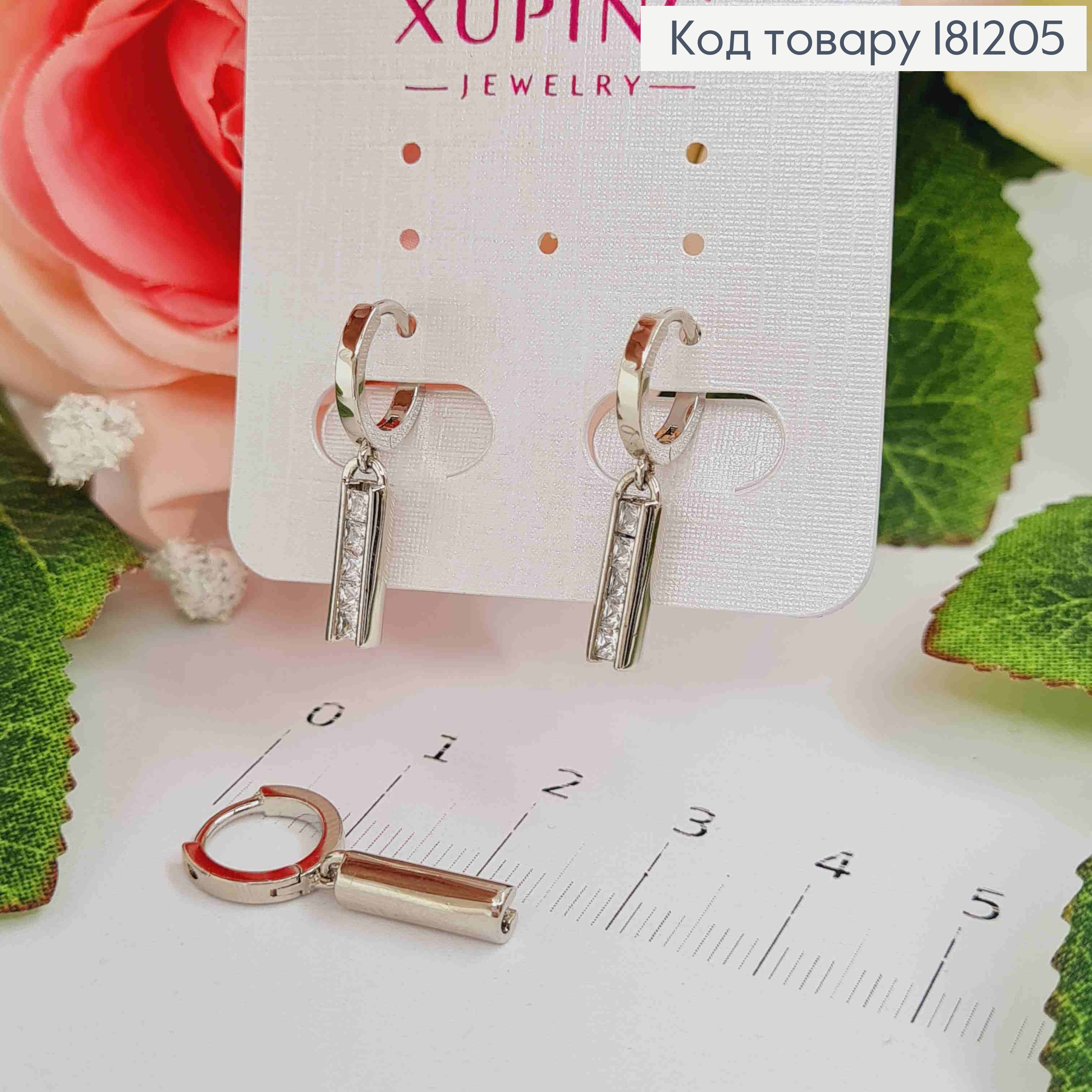Сережки родовані, Кільця 1см, з прямокутними підвісками в камінцях, 1,1см, Xuping