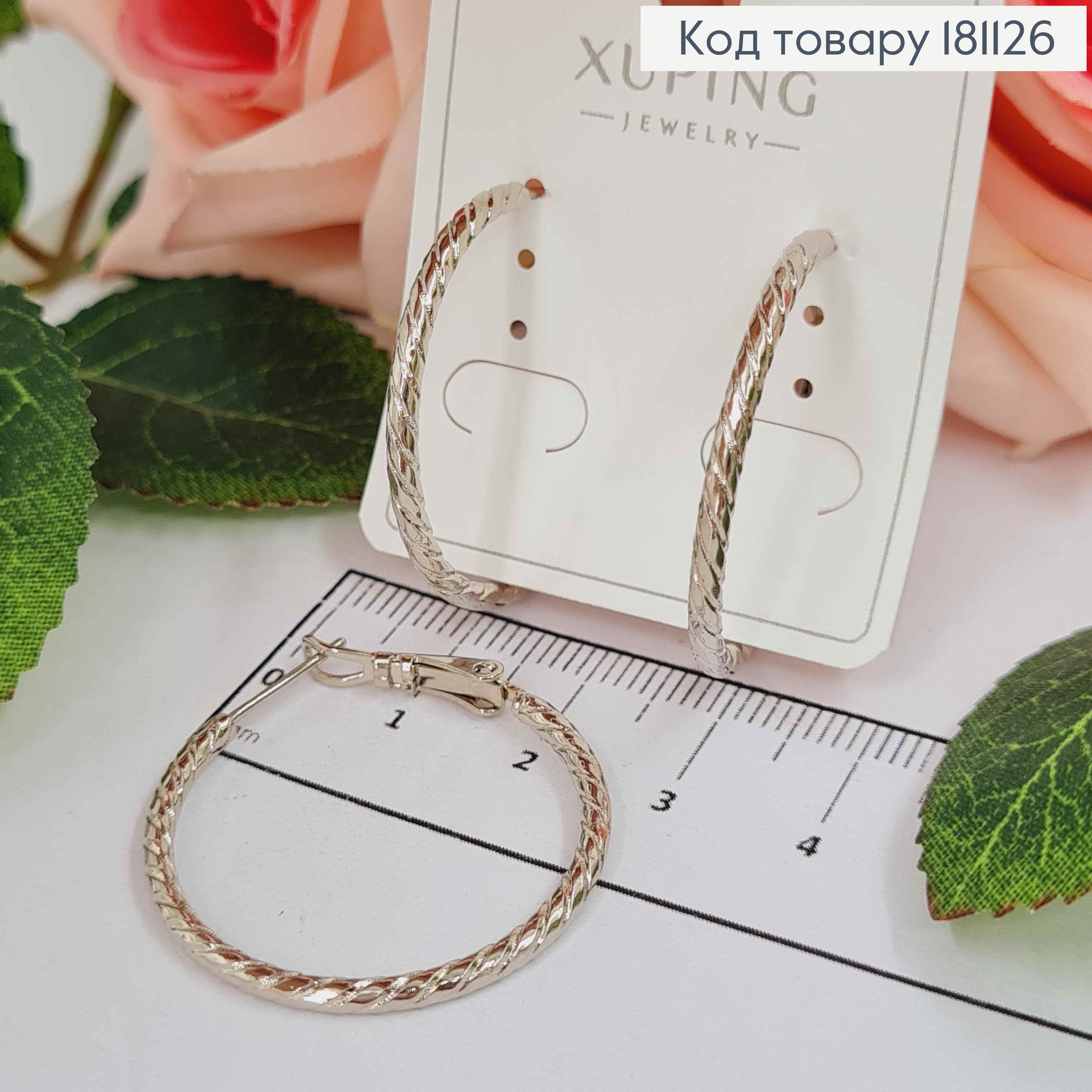 Сережки родовані кільця "Кручені", діаметр 3см, італійська застібка, Xuping 181964 фото
