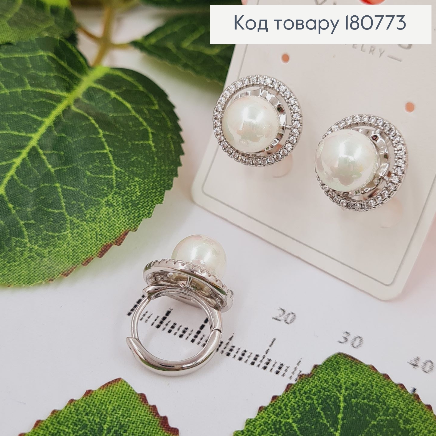 Сережки родовані кільця Коло з перлинкою і камінцями, 1,5см, Xuping