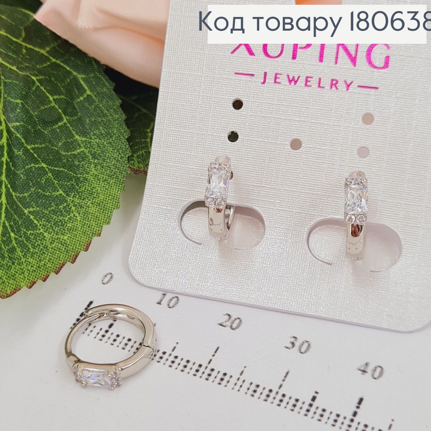 Сережки родовані, кільця з прямокутним камінцем, 1,3см, Хuping