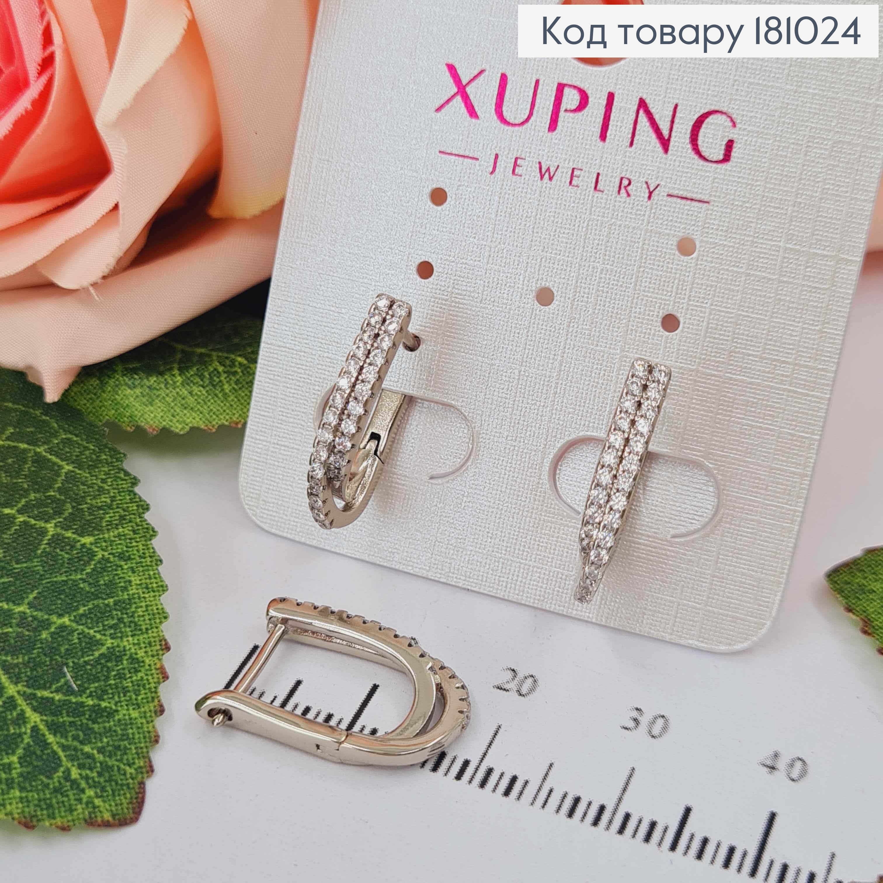 Сережки родовані, подвійна дуга в камінцях, 1.8см., англ. заст. Xuping 18K