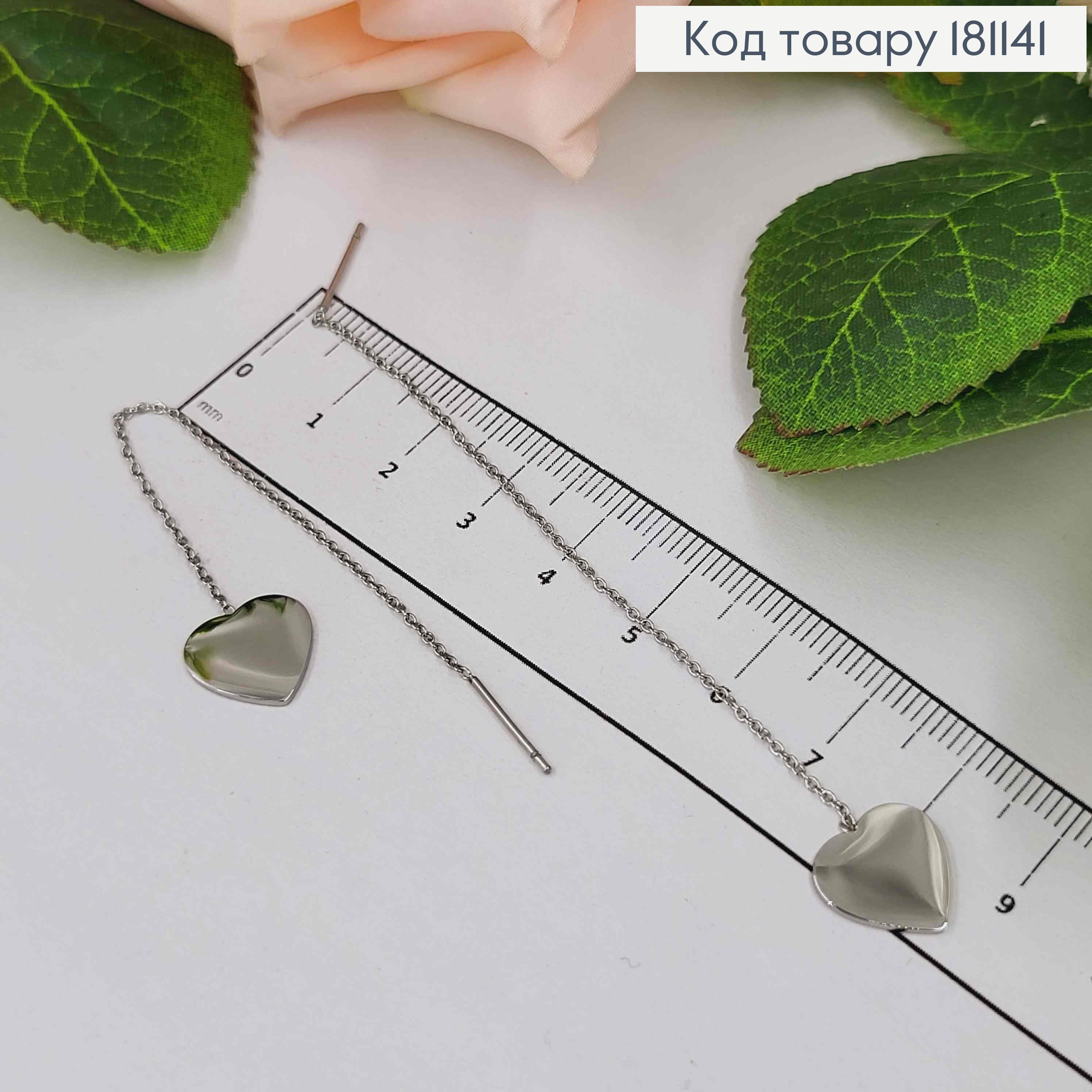 Сережки родовані, ппротяжки з сердечками, 9см, Xuping